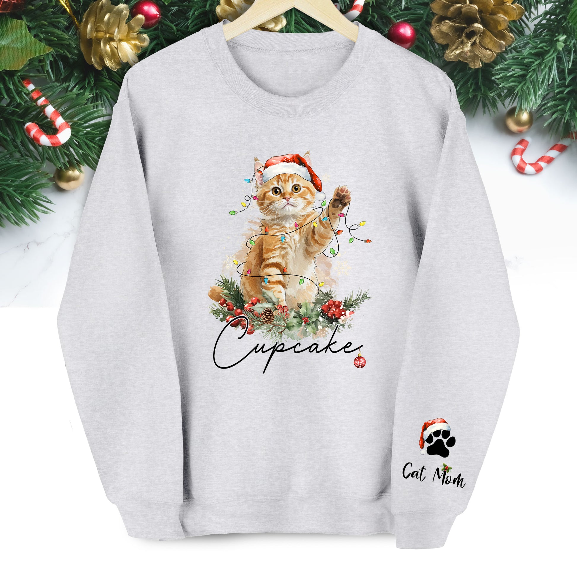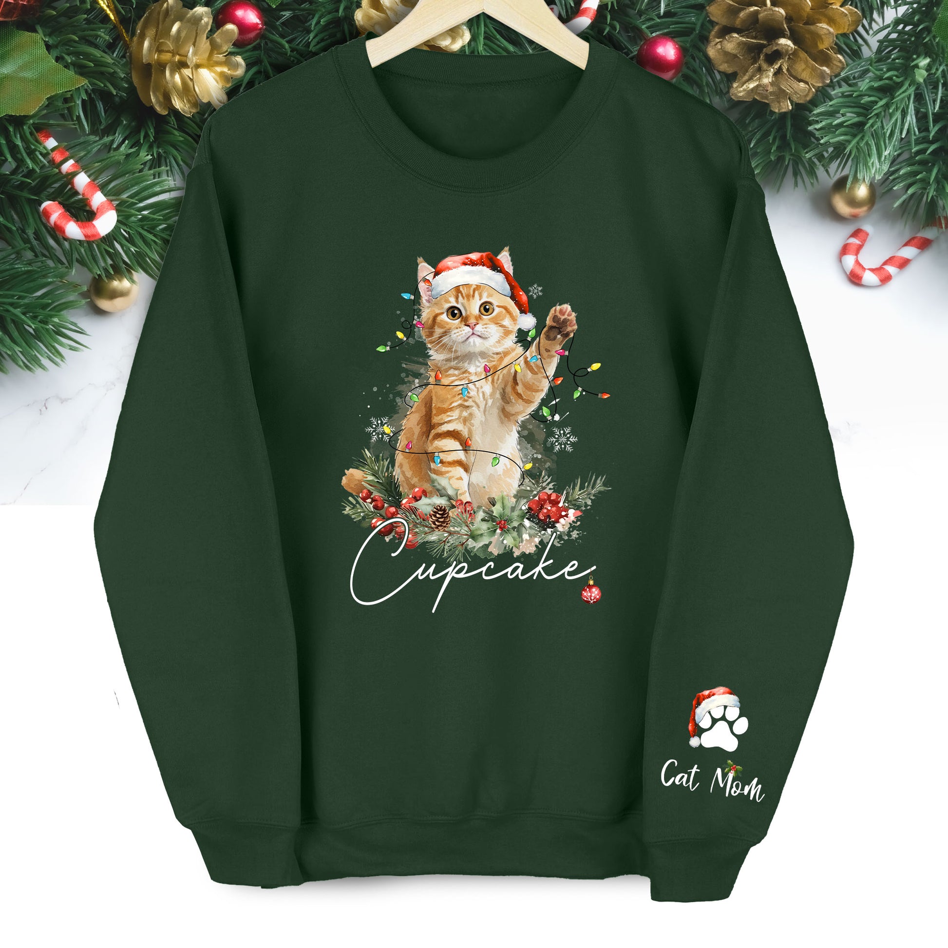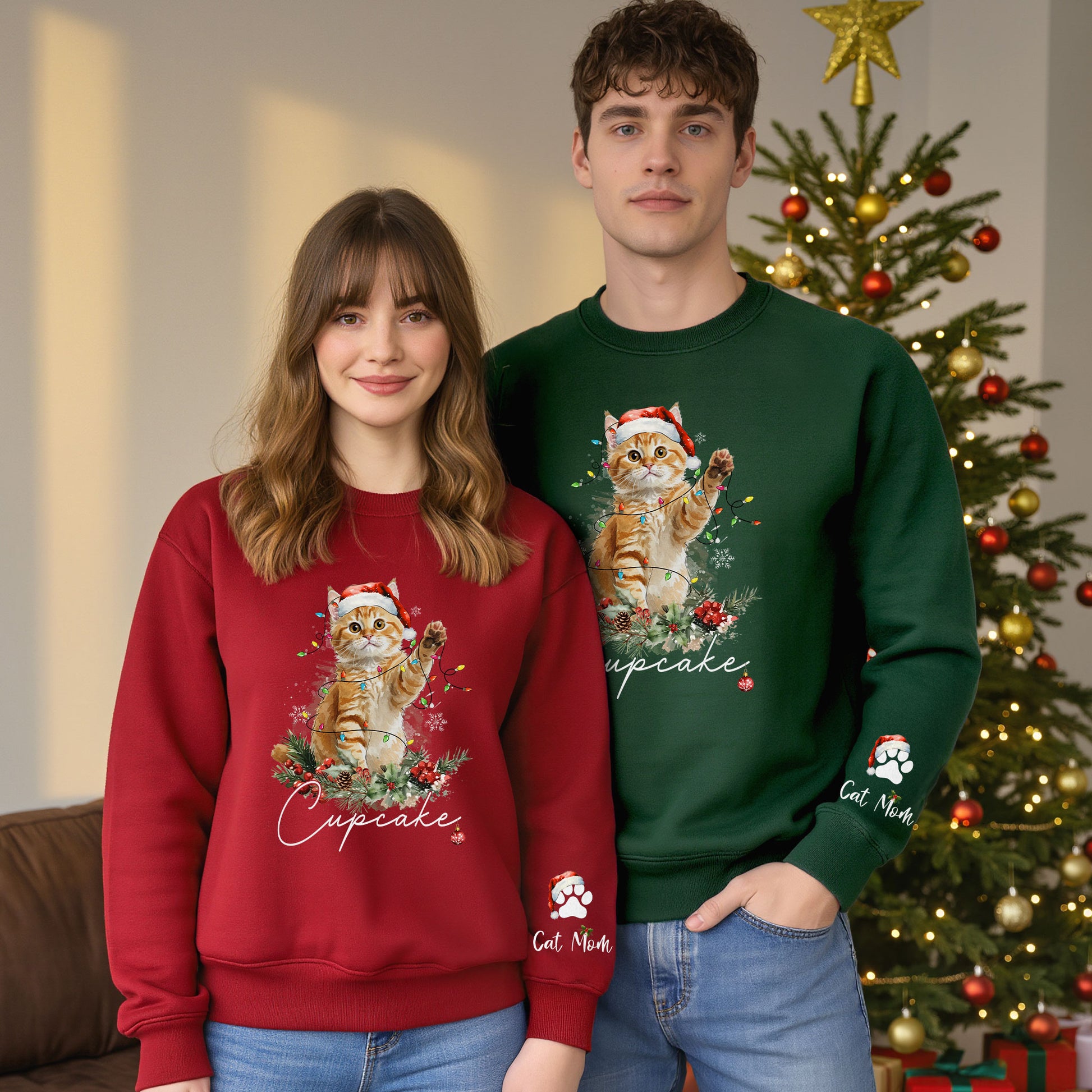 Custom Cat Christmas Sweatshirt โ Personalized Holiday Pet Portrait Gift for Cat Moms