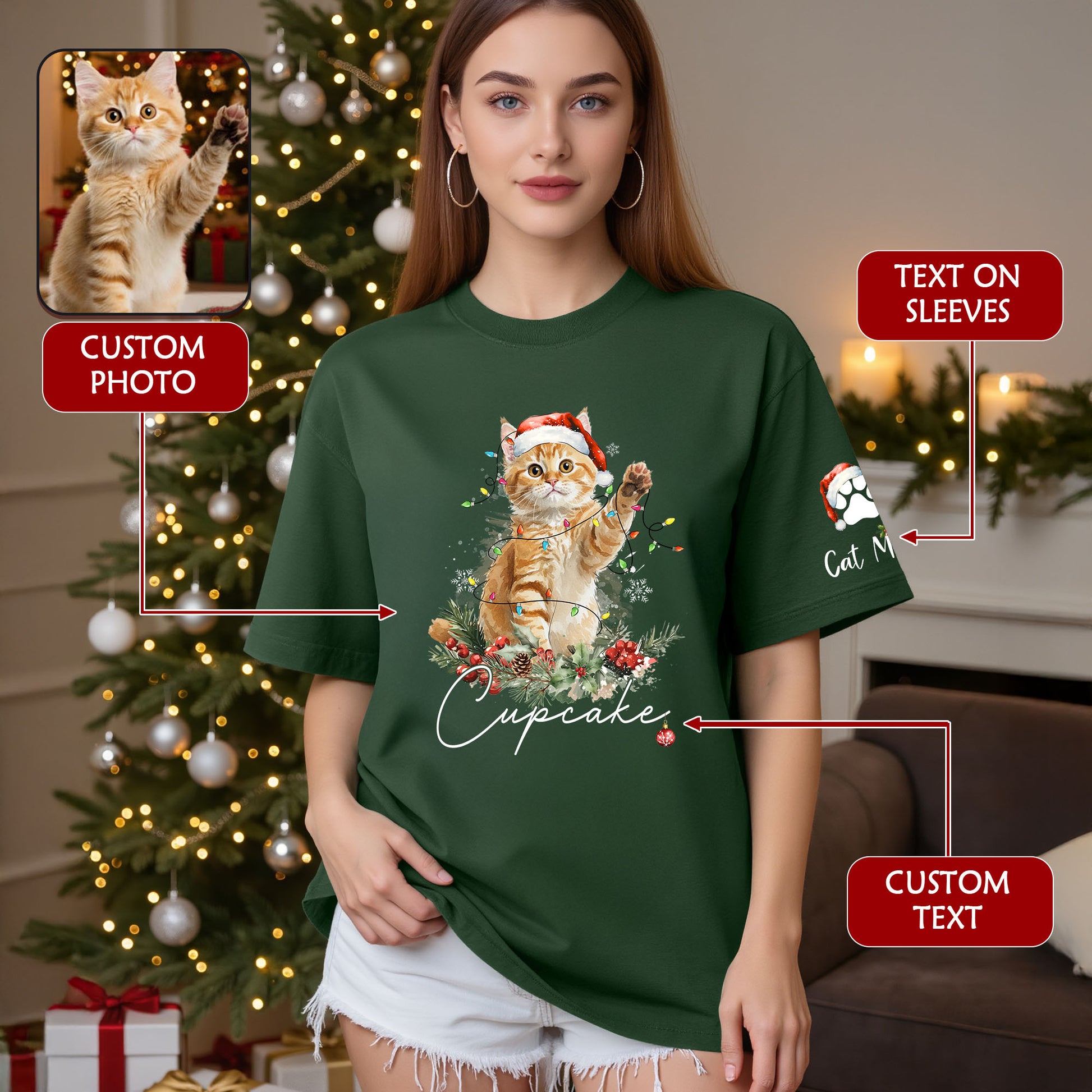 Custom Cat Lover T-Shirt โ Personalized Pet Photo Christmas Shirt, Cute Gift for Pet Lovers