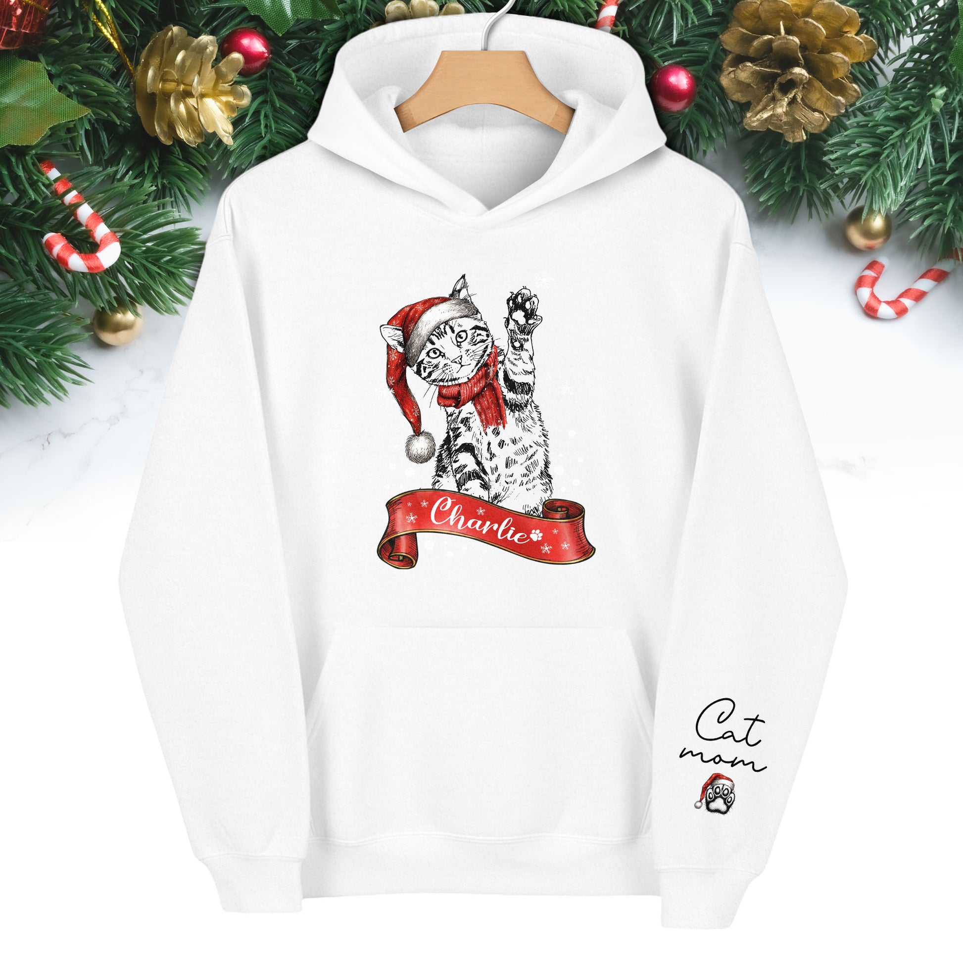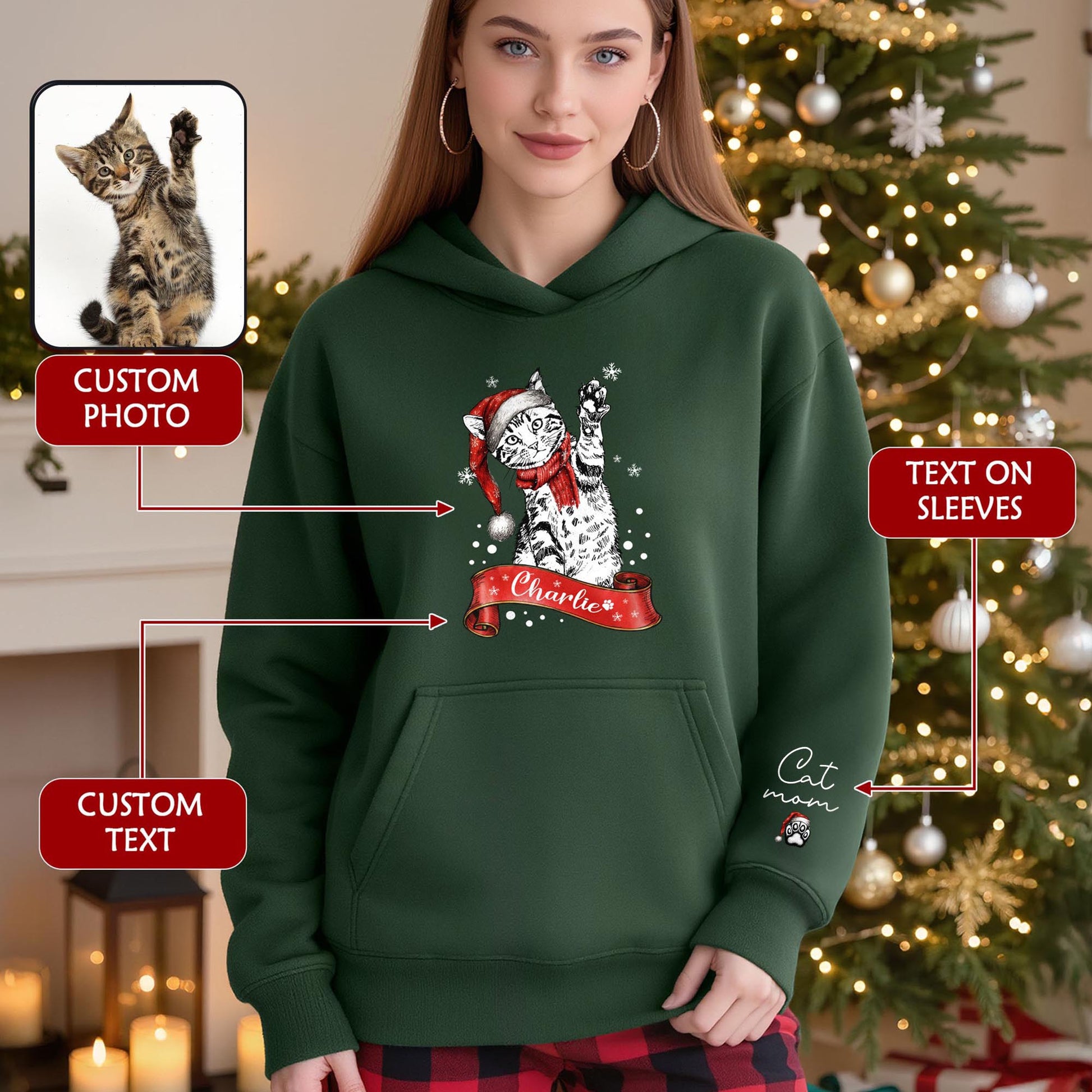Custom Cat Mom Christmas Hoodie β Personalized Cat Photo Hoodie with Pet Name, Holiday Gift for Cat Lovers