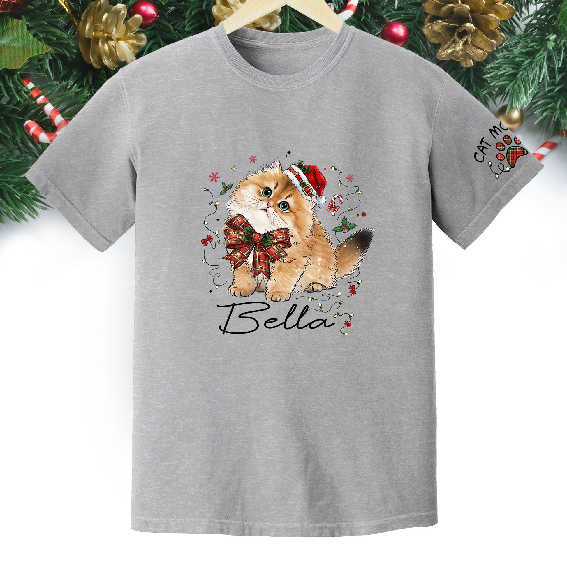 Custom Cat Mom Shirt, Christmas Shirts For Women, Personalized Cat Mom Shirt