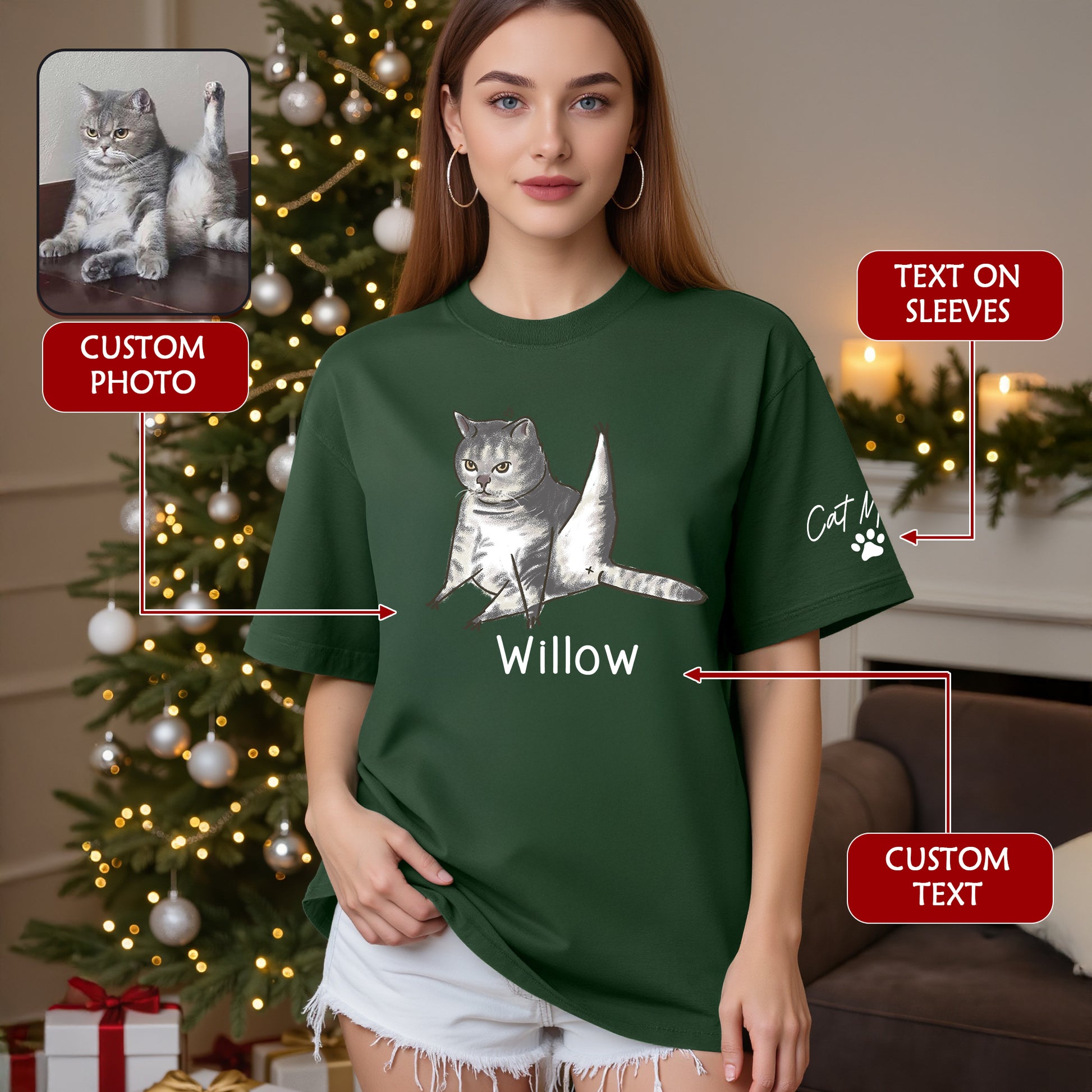 Custom Cat Mom T-Shirt โ Personalized Funny Cat Shirt with Pet Photo & Name, Unique Gift for Cat Lovers