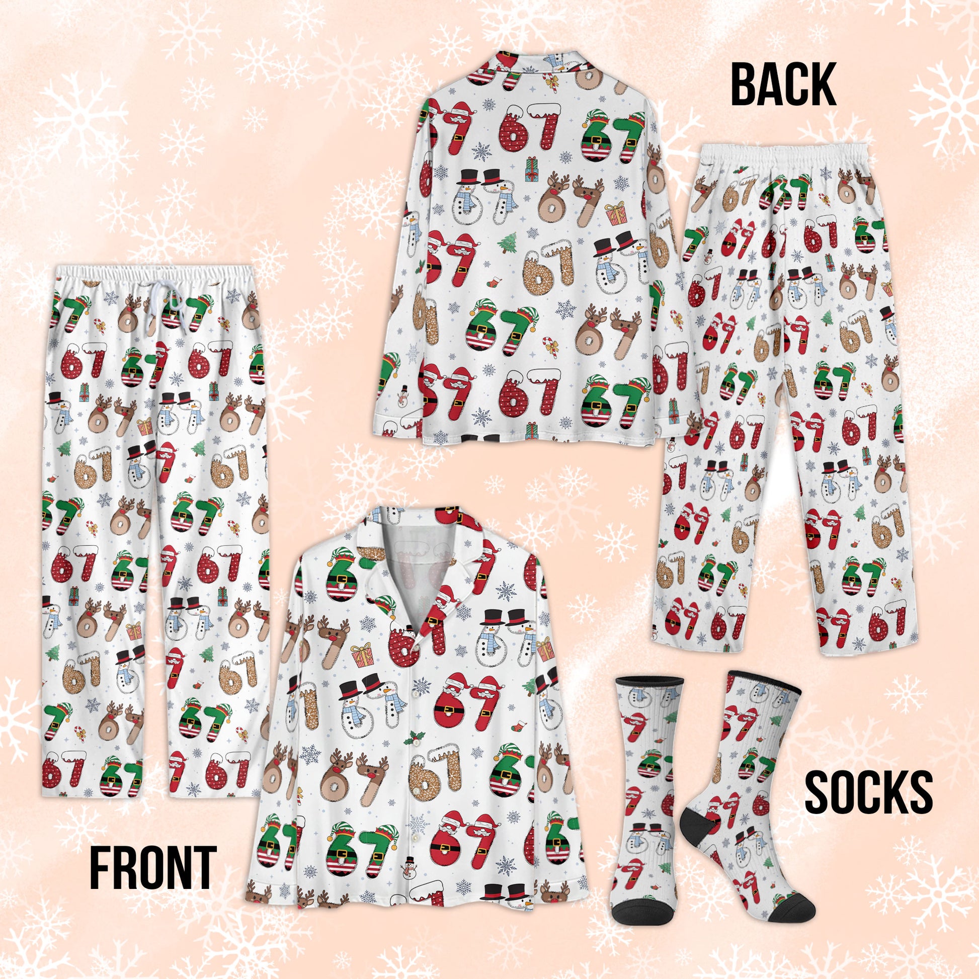 Custom Christmas Number 67 Pajama Pants β Personalized Holiday Print Cozy Lounge Bottoms