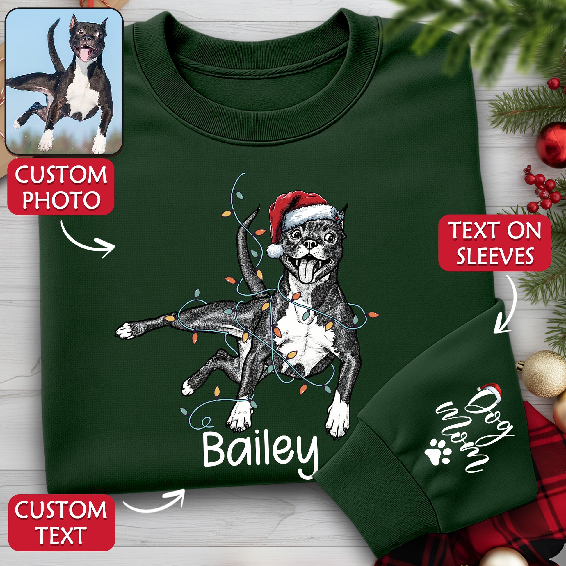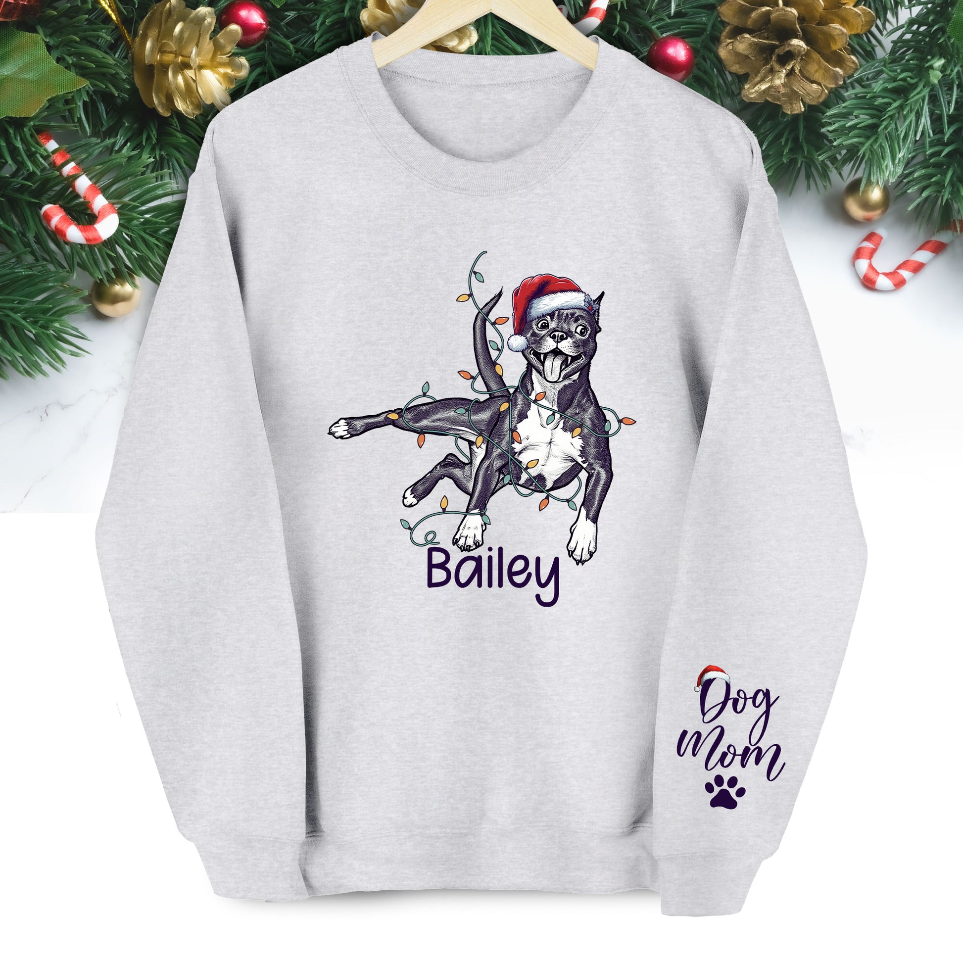 Custom Christmas Pet Portrait Sweatshirt β Personalized Dog Lover Gift for Dog Mom & Dog Dad