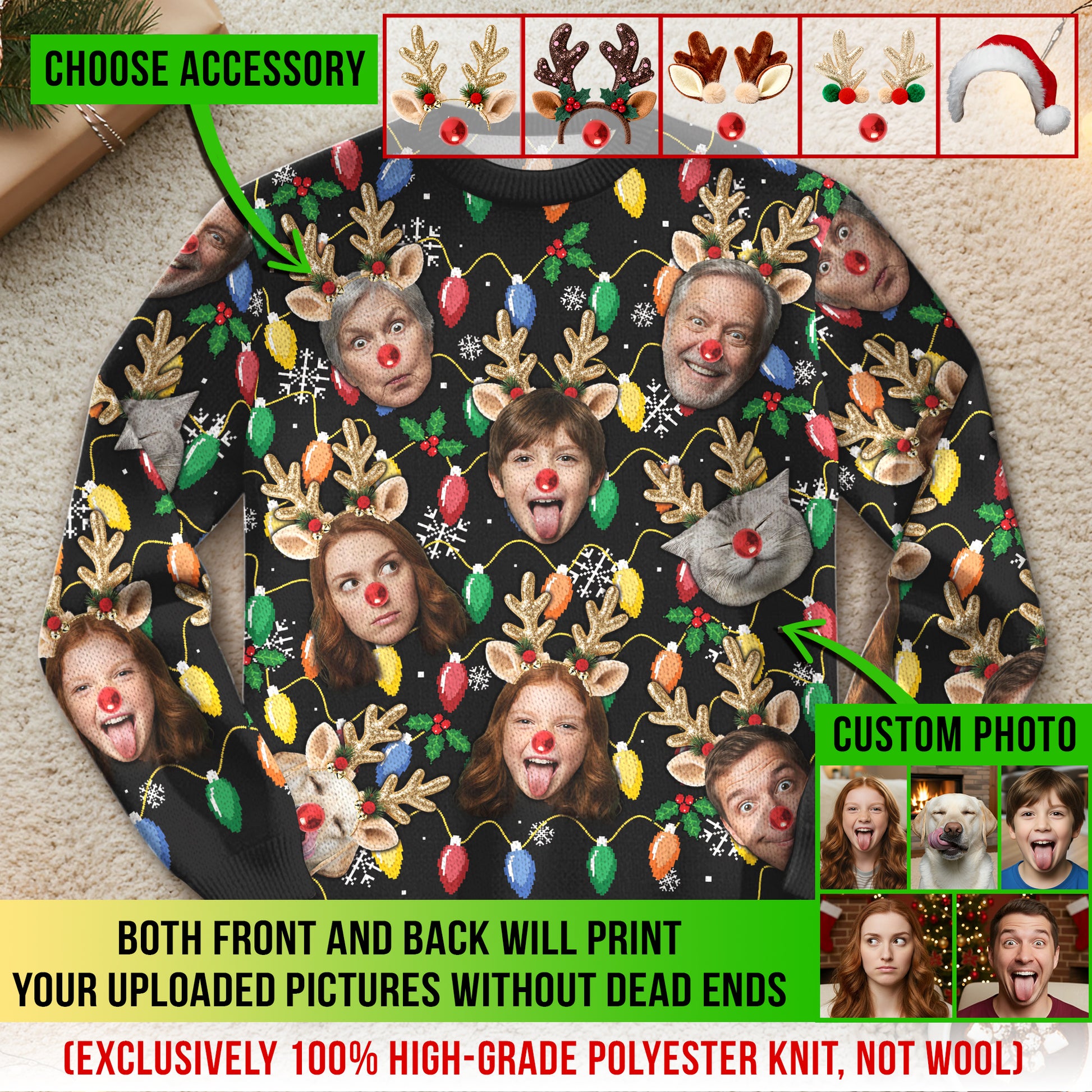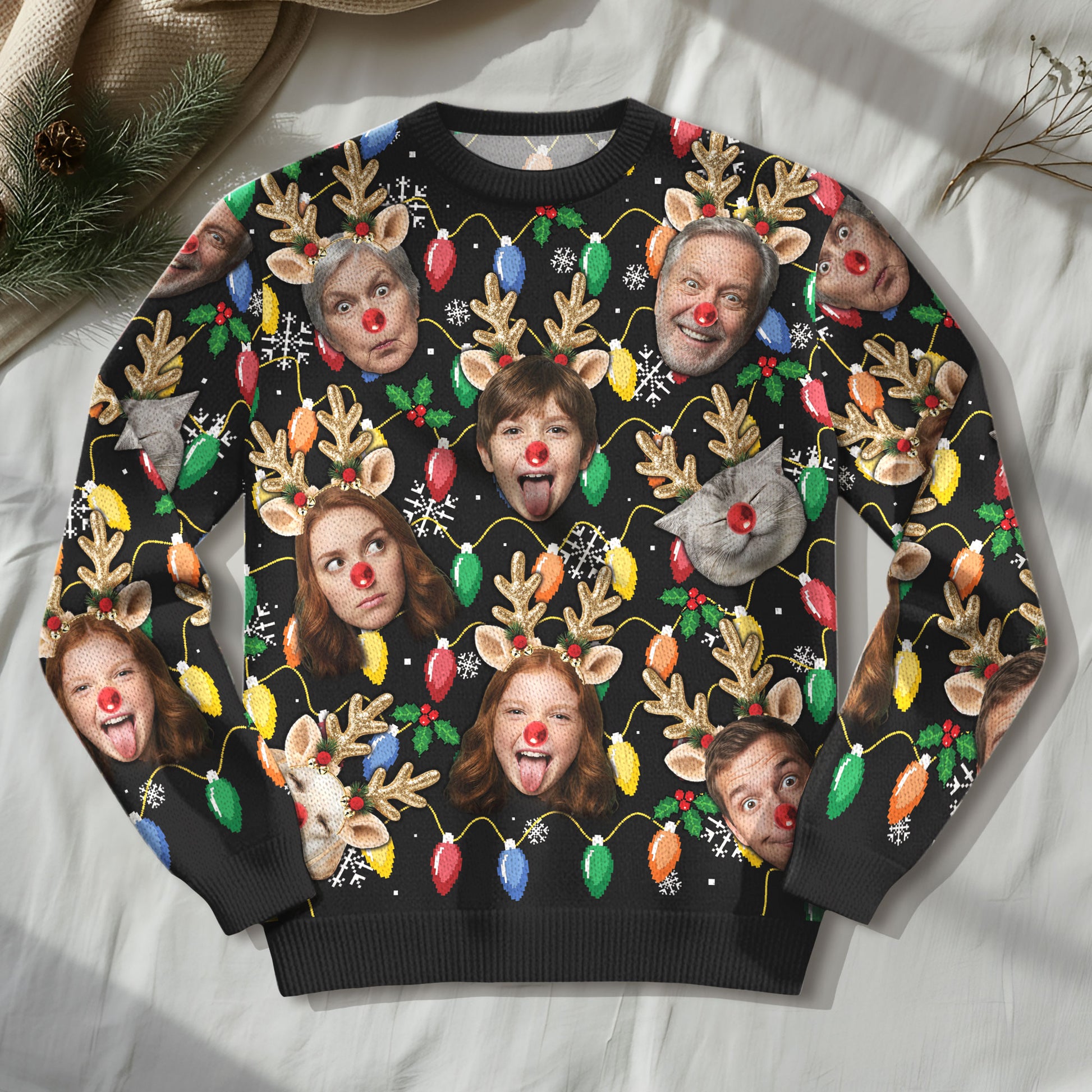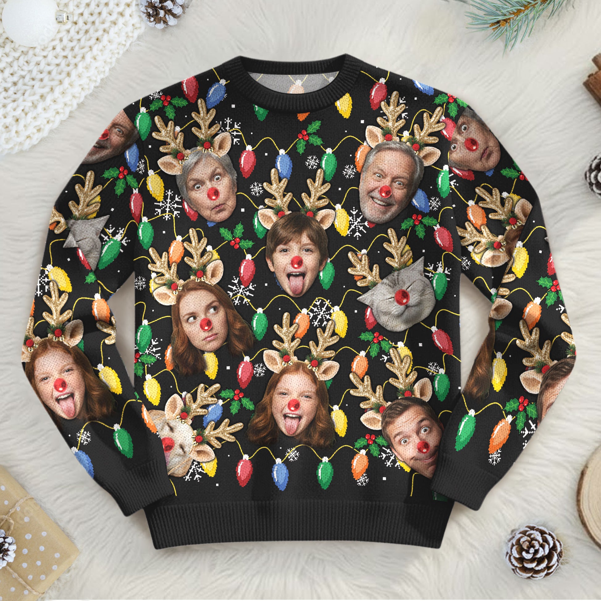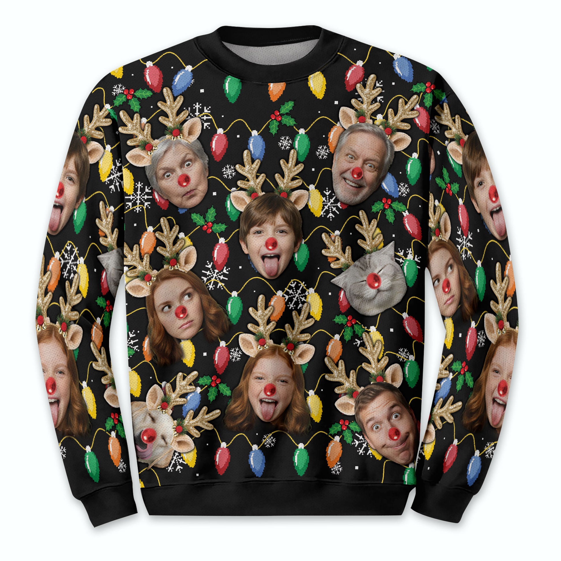 Custom Christmas Photo Sweatshirt with Lights & Snowflakes Pattern