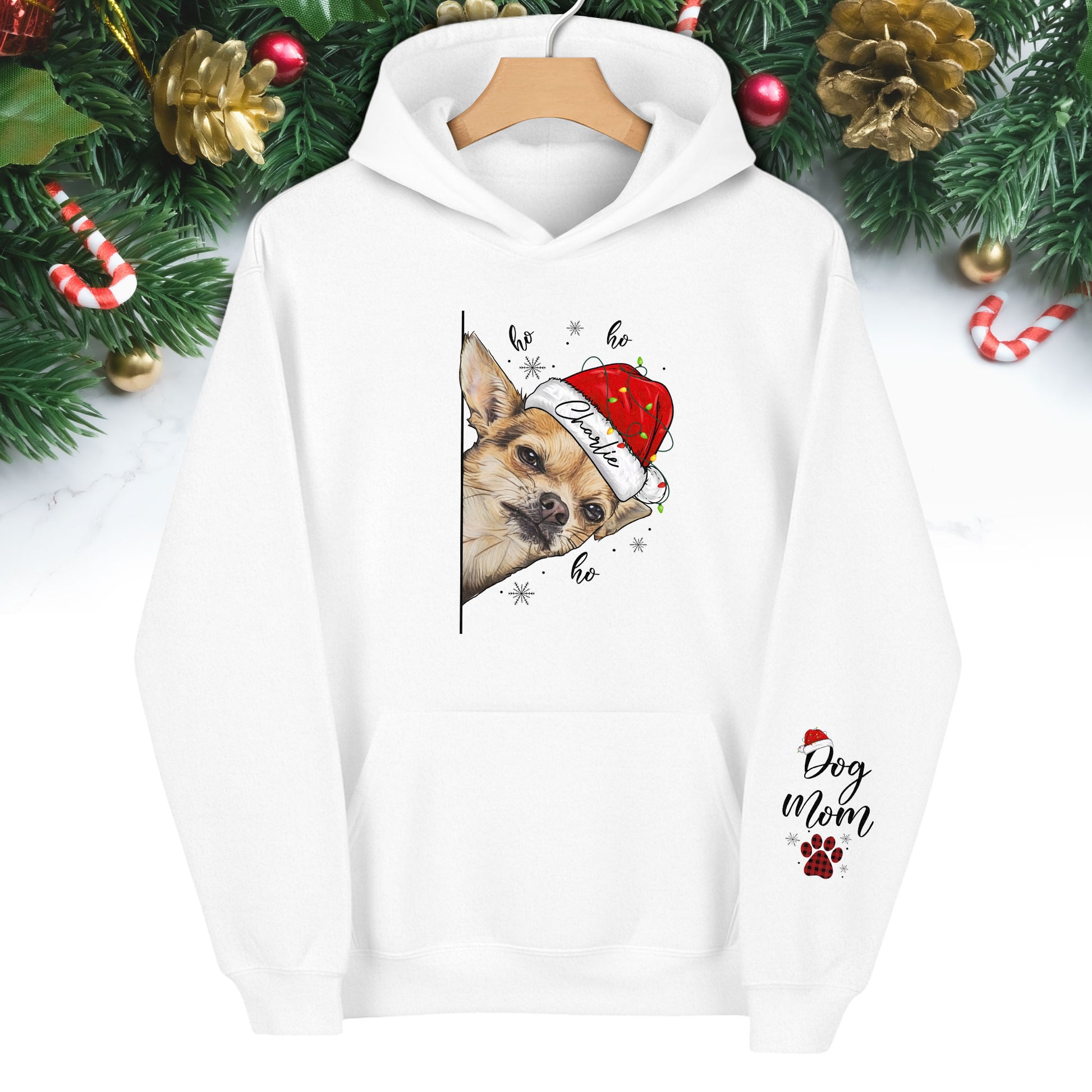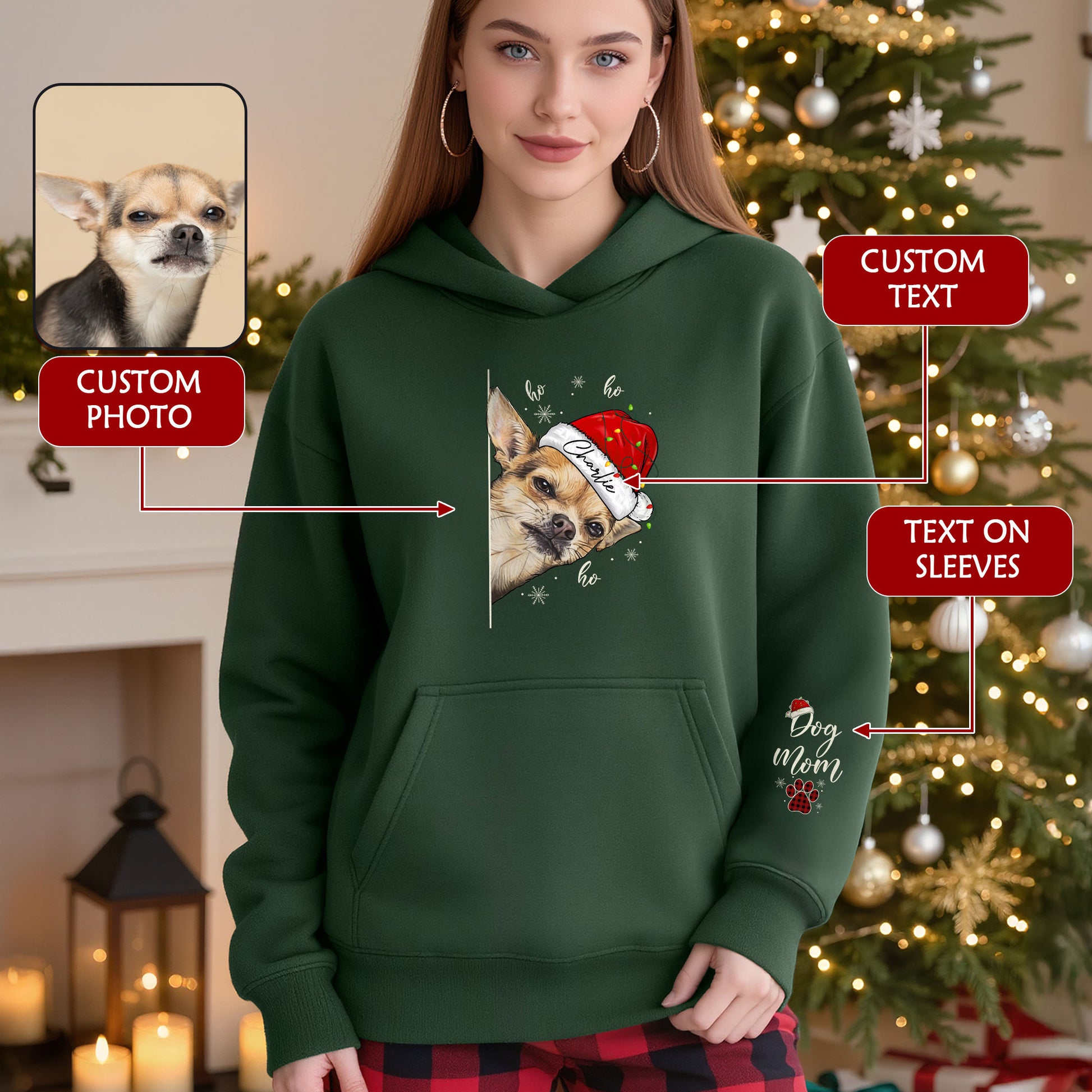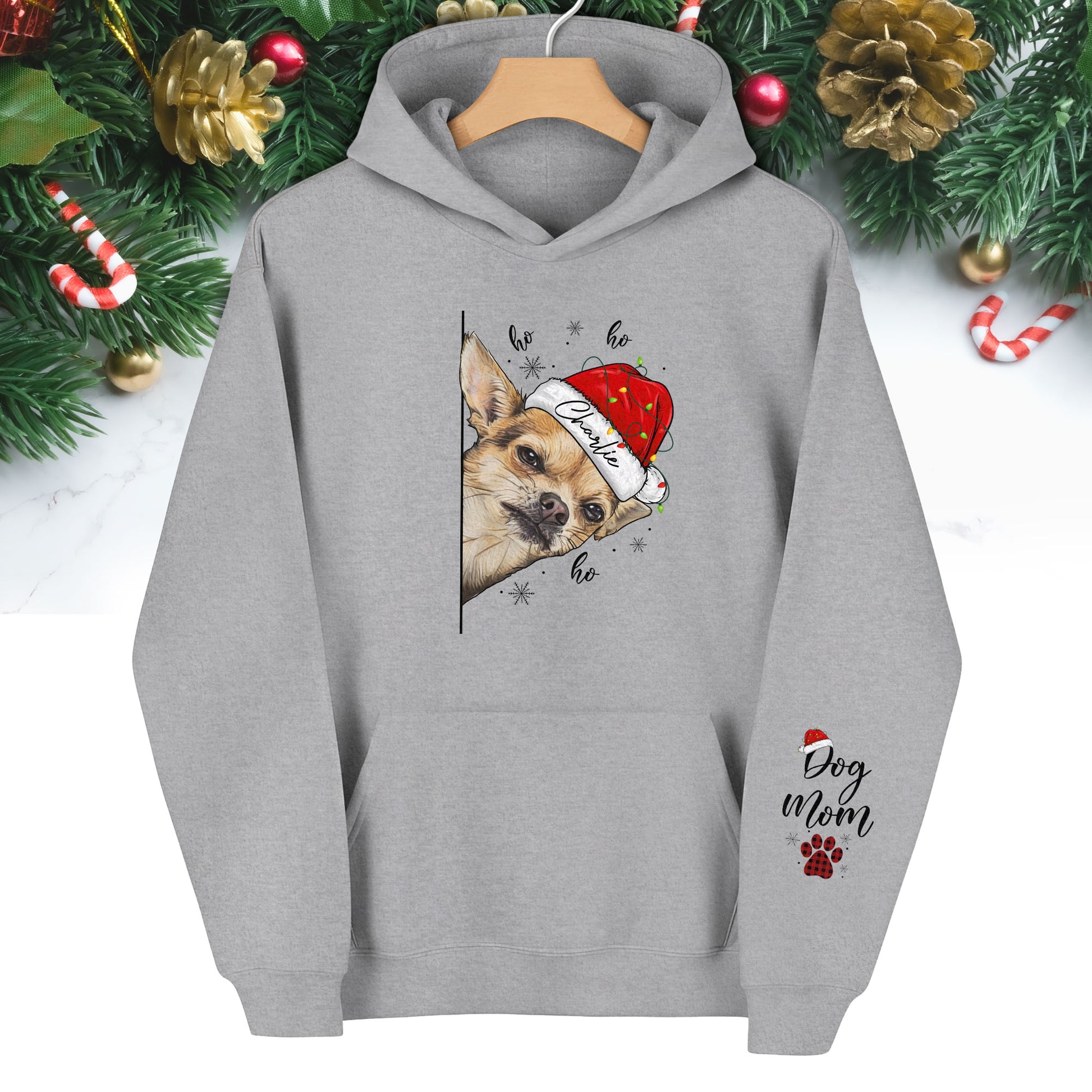 Custom Dog Mom Christmas Hoodie β Personalized Dog Photo Hoodie with Pet Name, Funny Holiday Gift for Dog Lovers