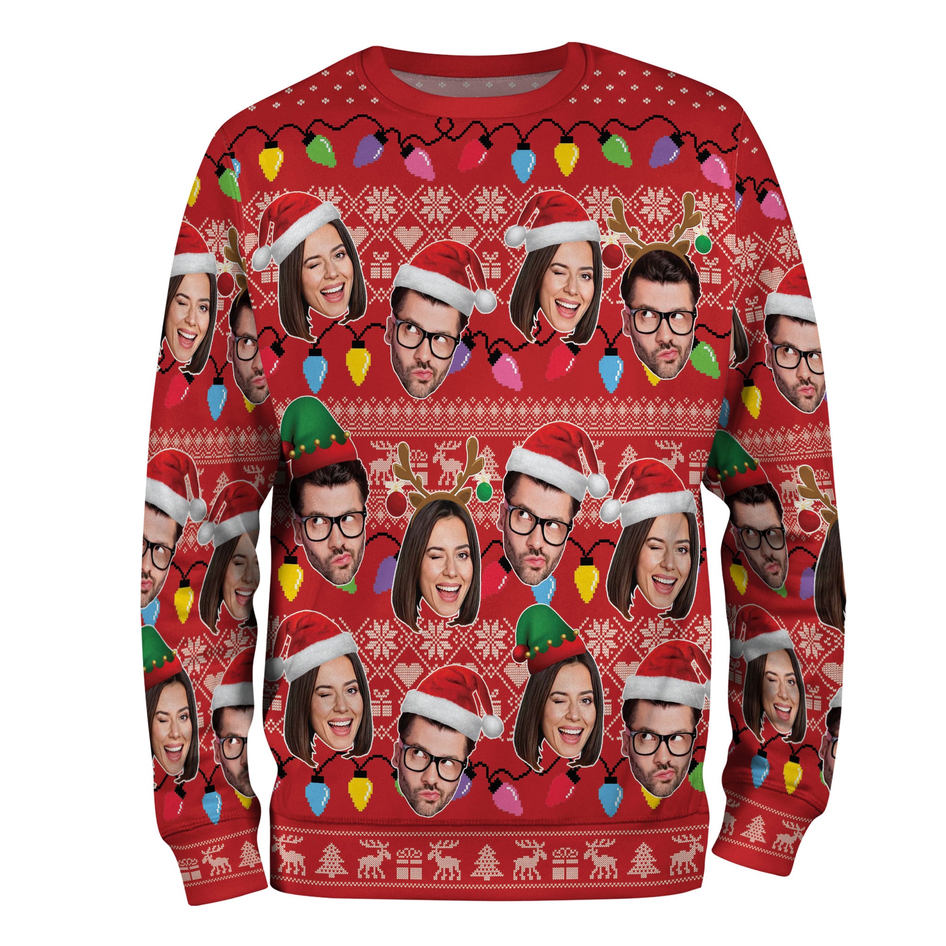 Custom Family Face Ugly Xmas Sweater – Personalized Photo Christmas Sweatshirt for Holiday Gift
