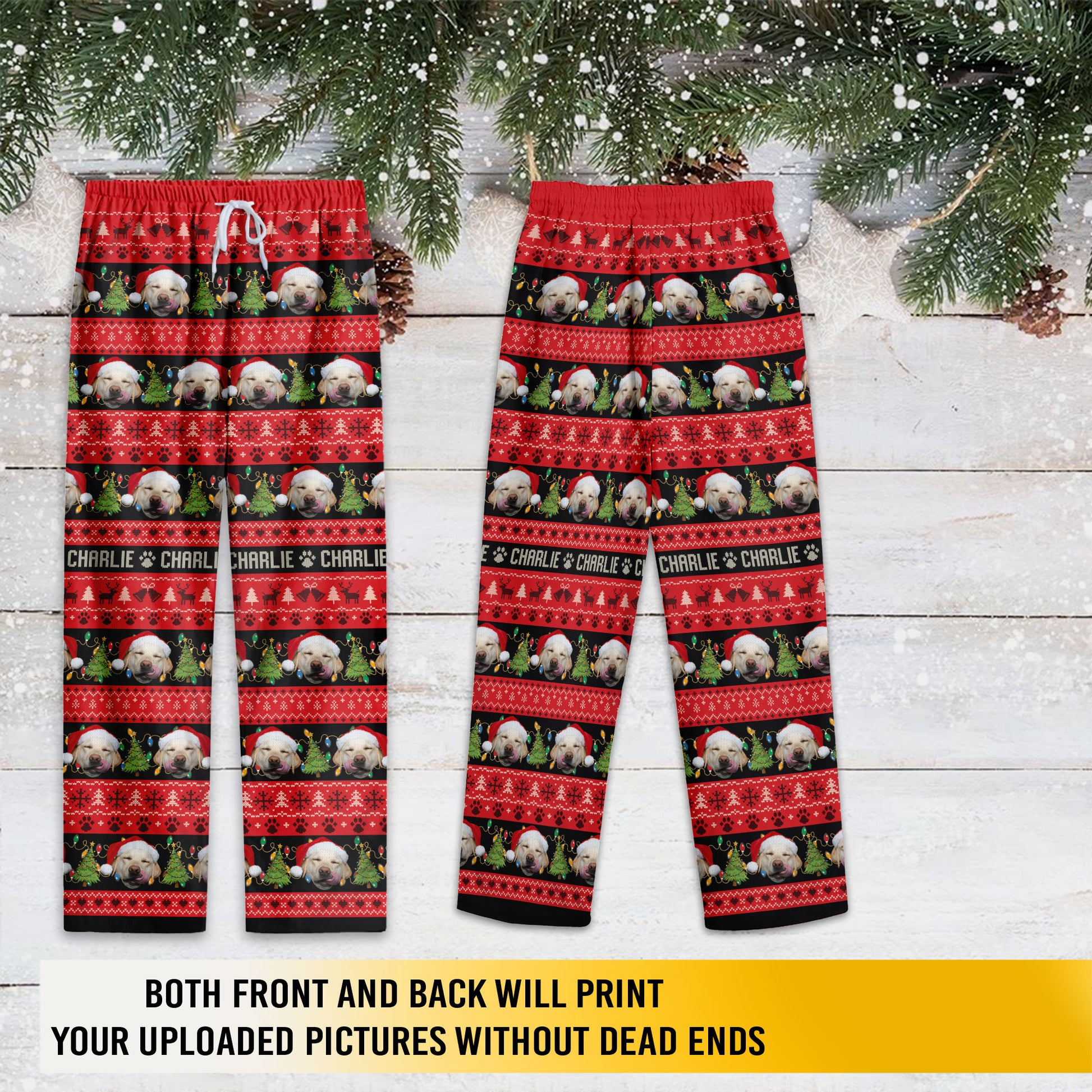 Custom Pet Christmas Name Pajama Pants – Personalized Dog Photo Holiday Lounge Wear