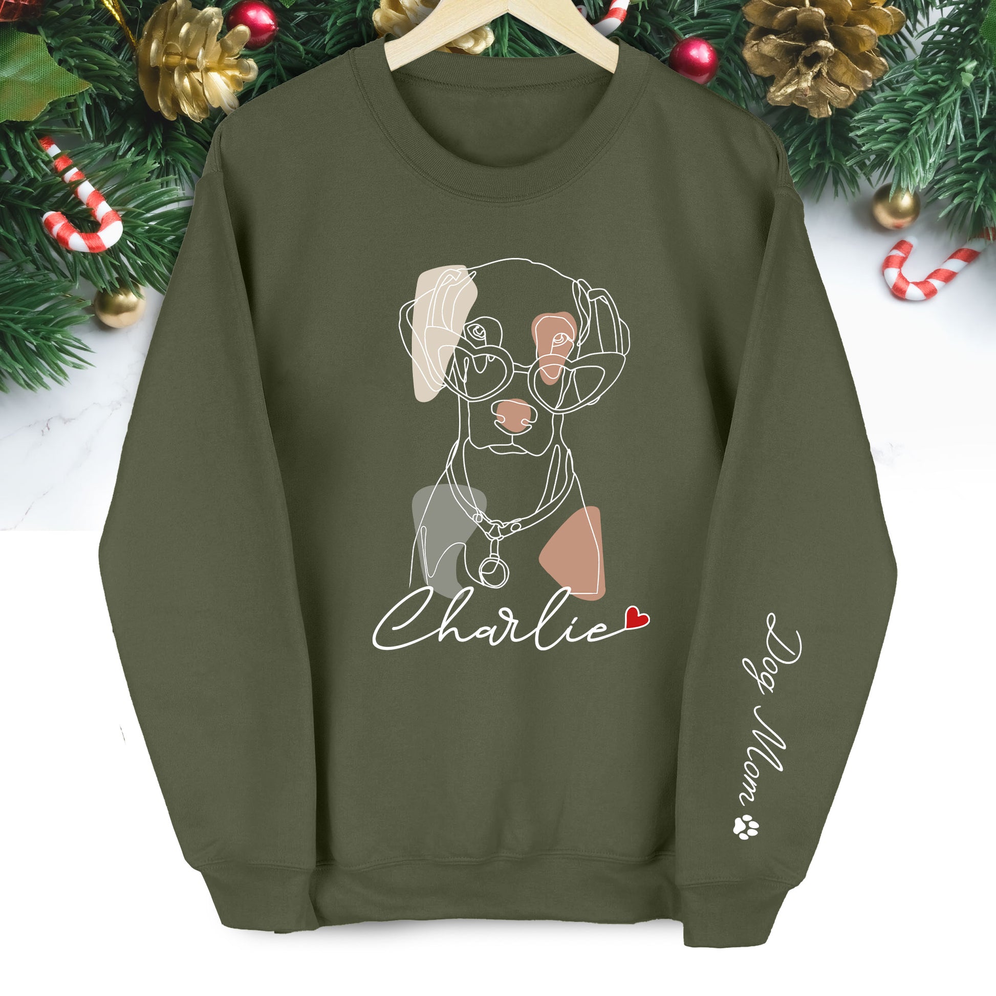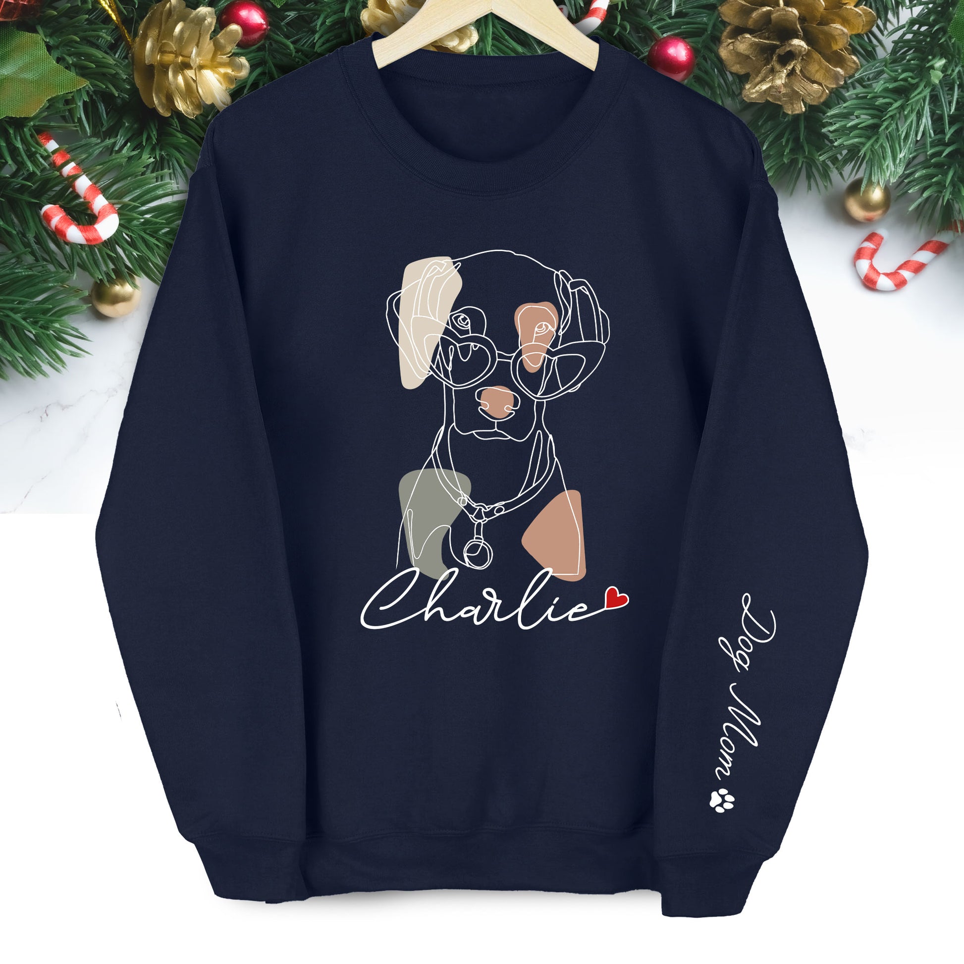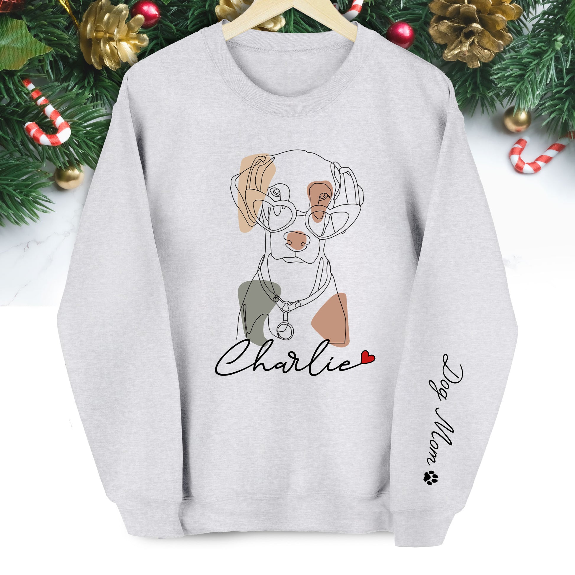 Custom Pet Sweatshirt – Personalized Dog Mom Sweatshirt with Your Dog’s Line Art Portrait