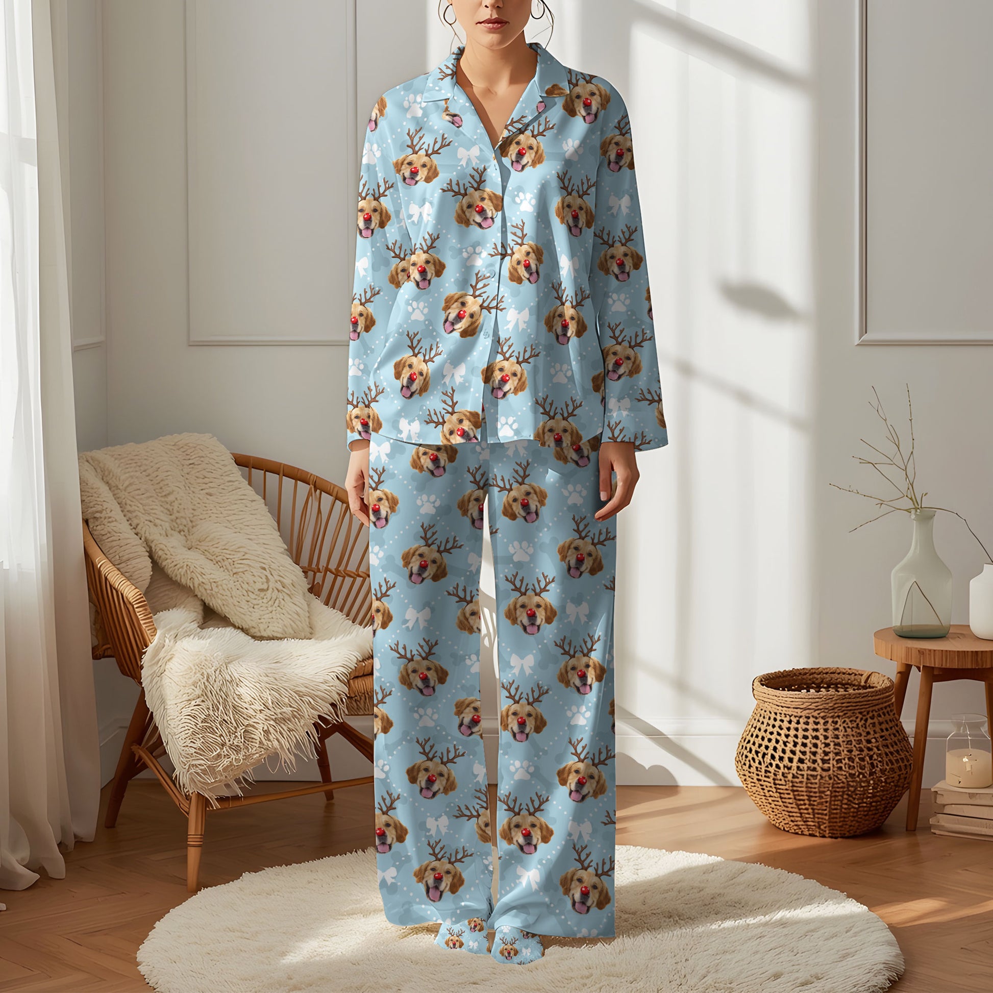 Custom Reindeer Pet Photo Pajama Pants β Personalized Dog Pattern Holiday Sleepwear