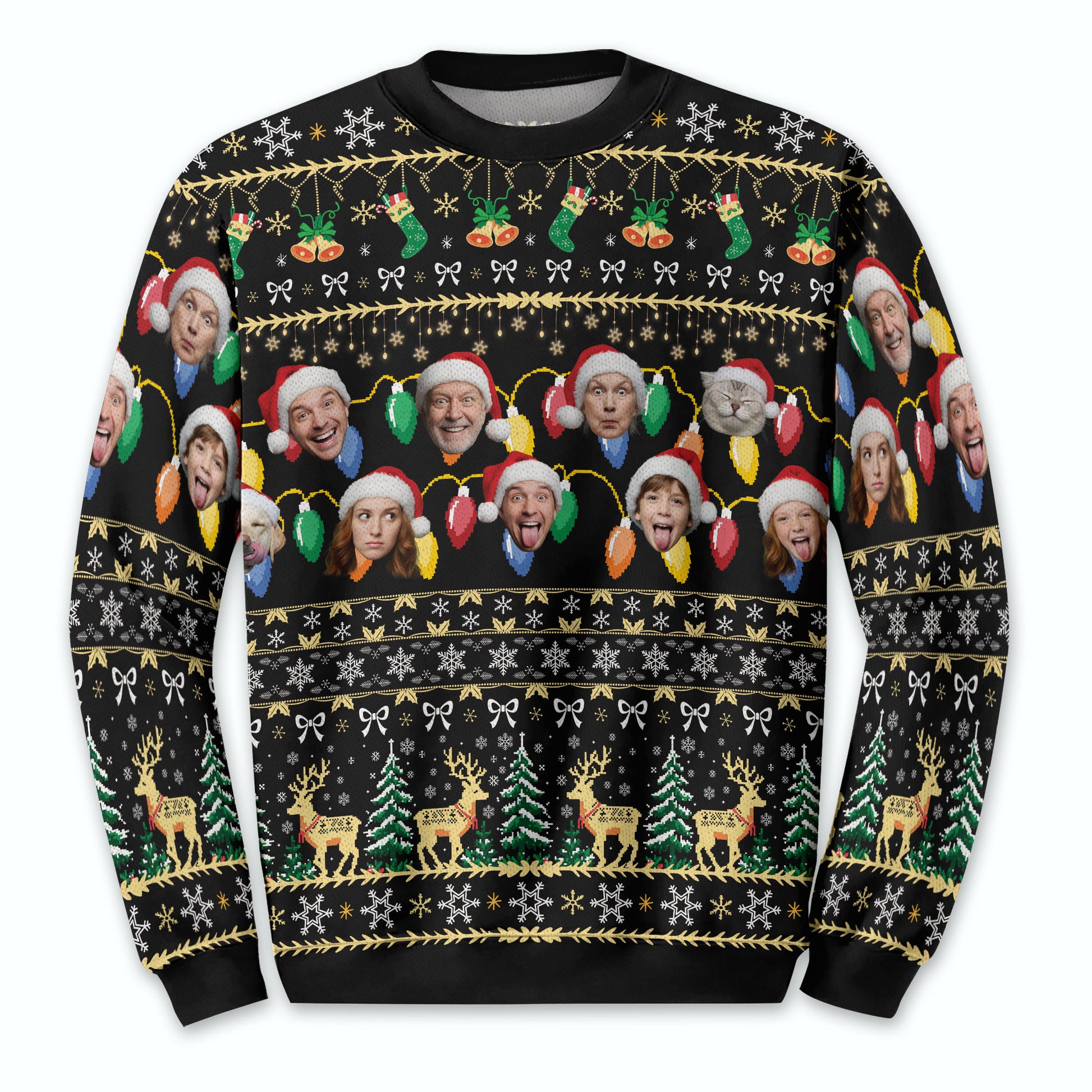 Custom Ugly Christmas Sweater – Personalized Photo Black Holiday Knit for Family, Pets & Festive Gifts