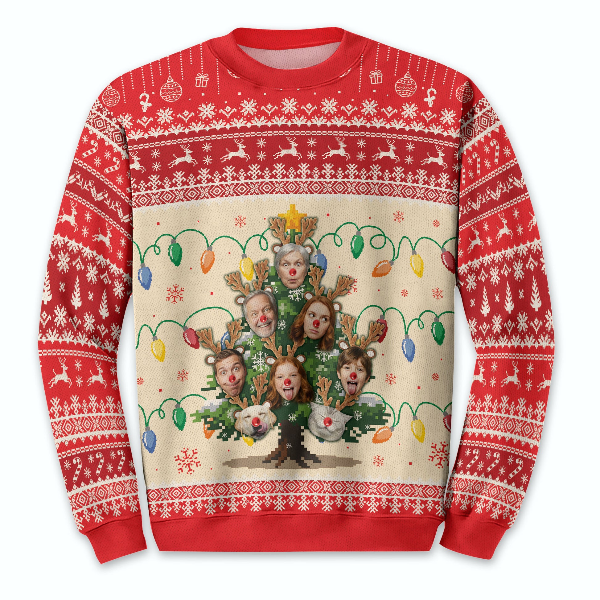 Custom Ugly Christmas Sweater – Personalized Photo Christmas Tree Design for Family, Pets & Holiday Fun