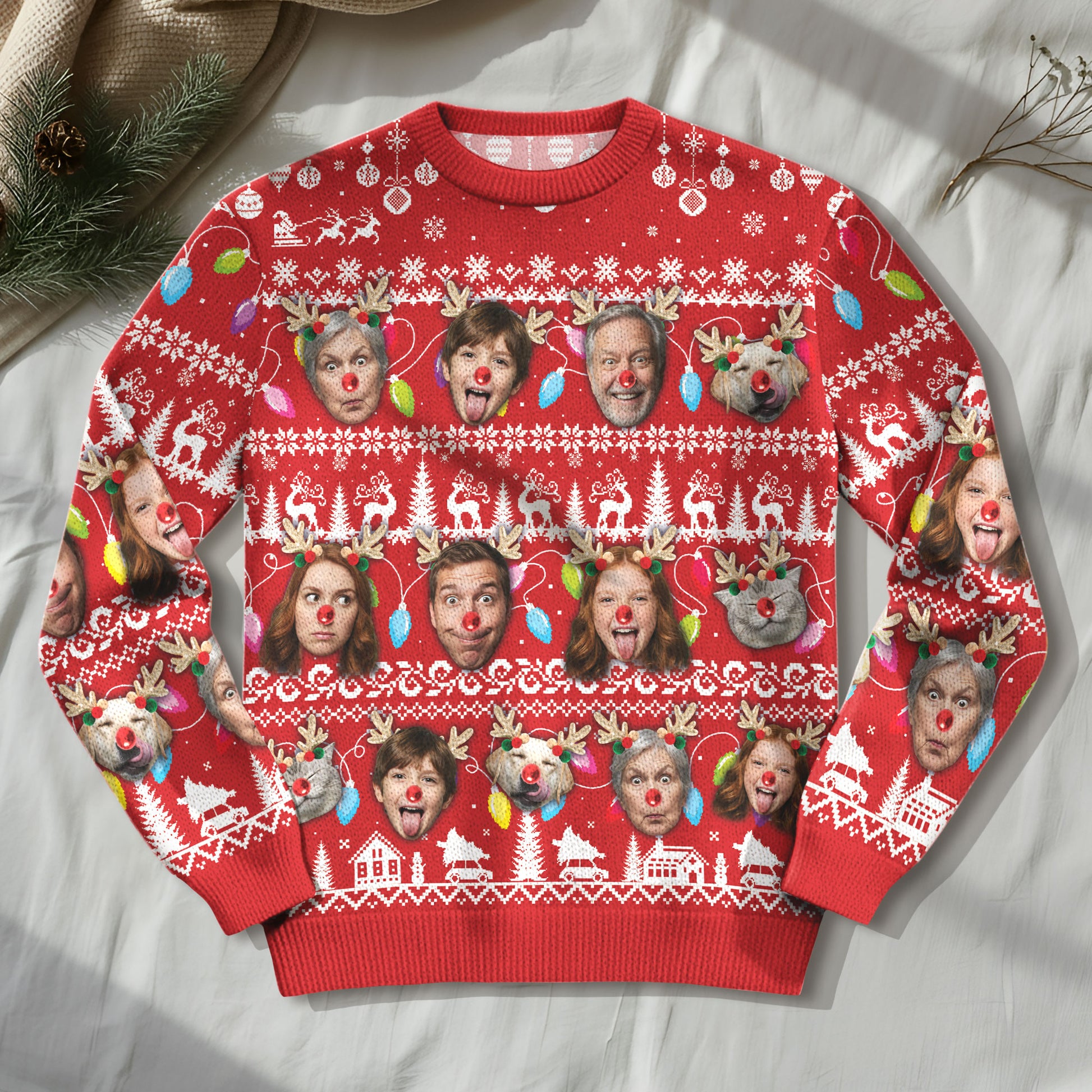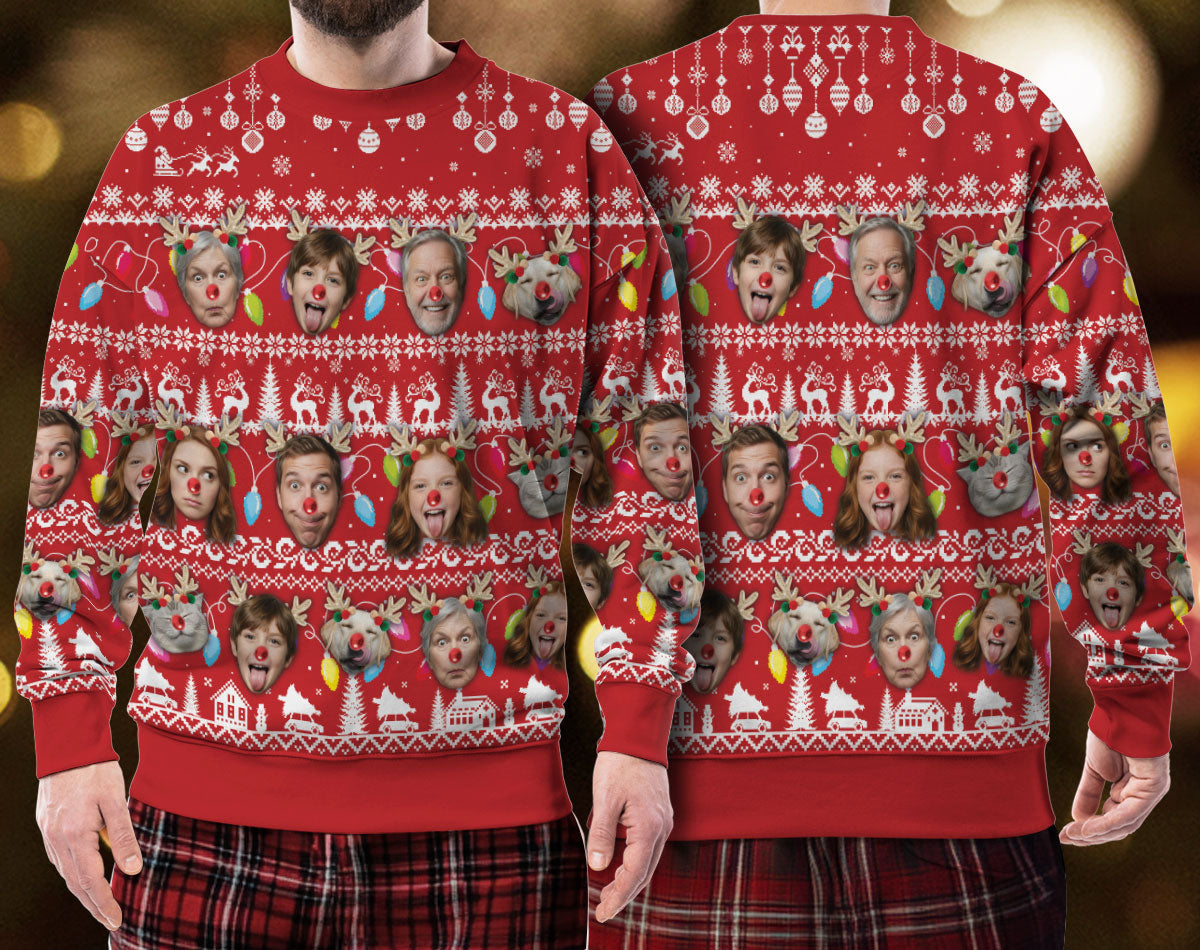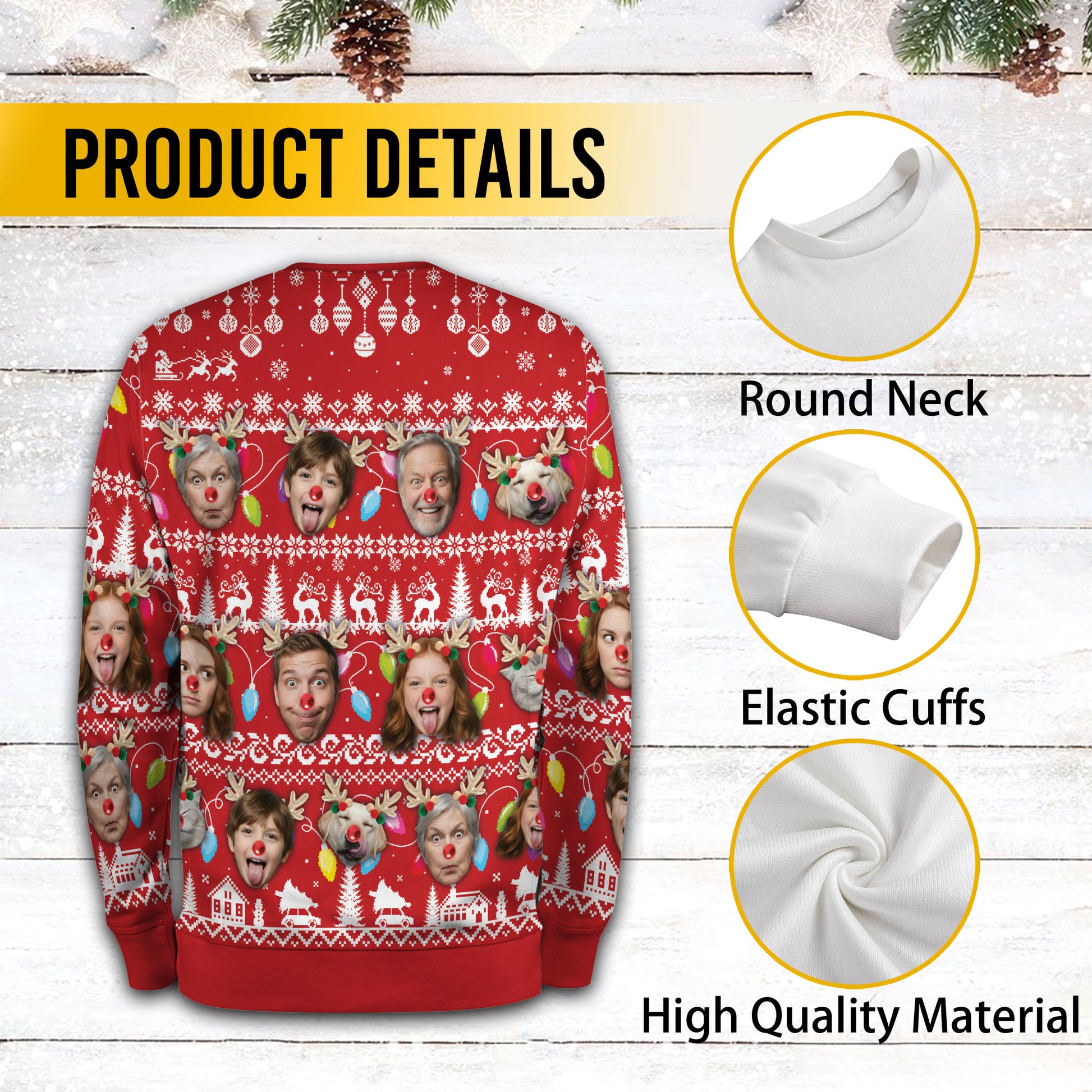 Funny Holiday Face Sweatshirt – Customized Family Christmas Sweater