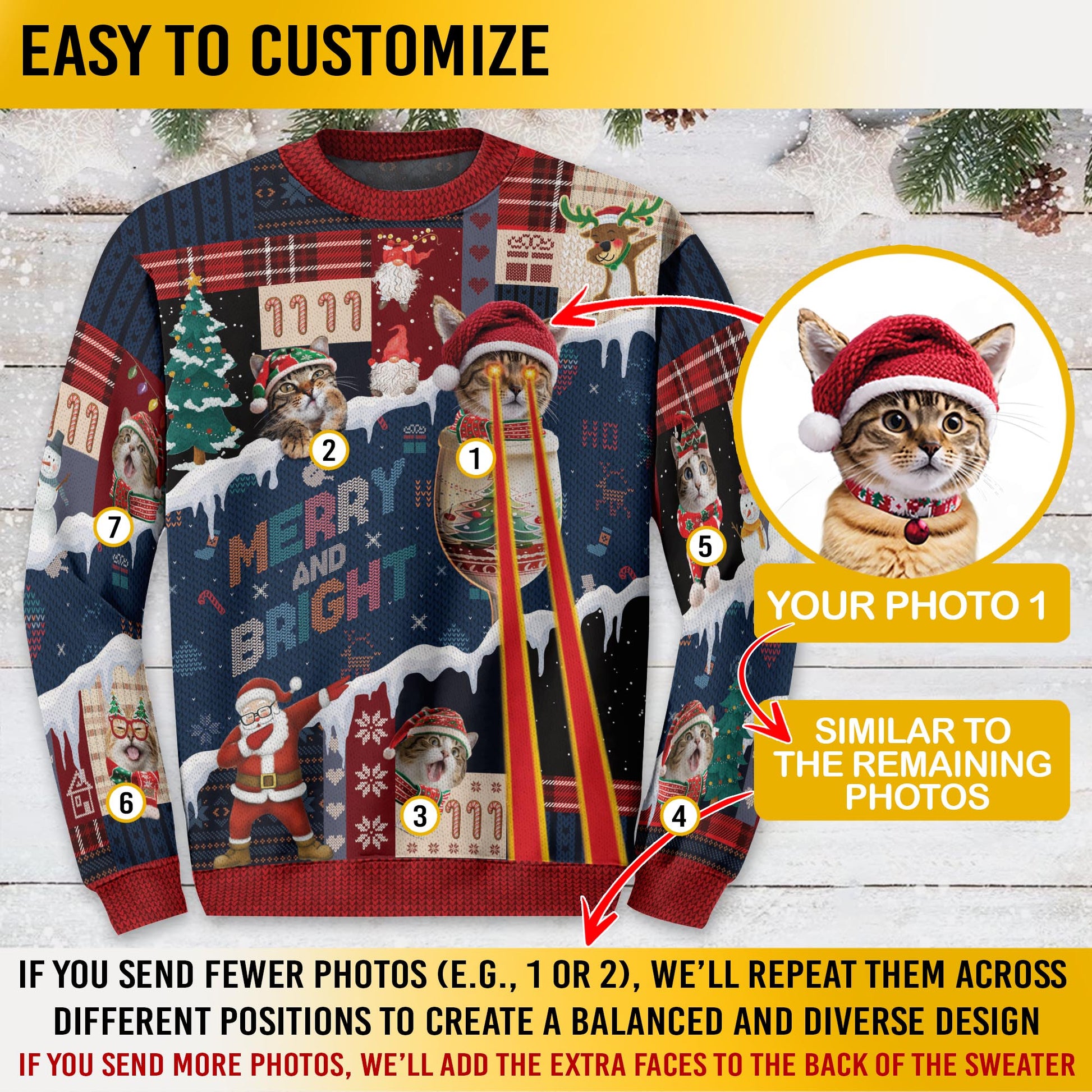 Merry & Bright Cat Ugly Christmas Sweater – Personalized Holiday Sweatshirt for Women