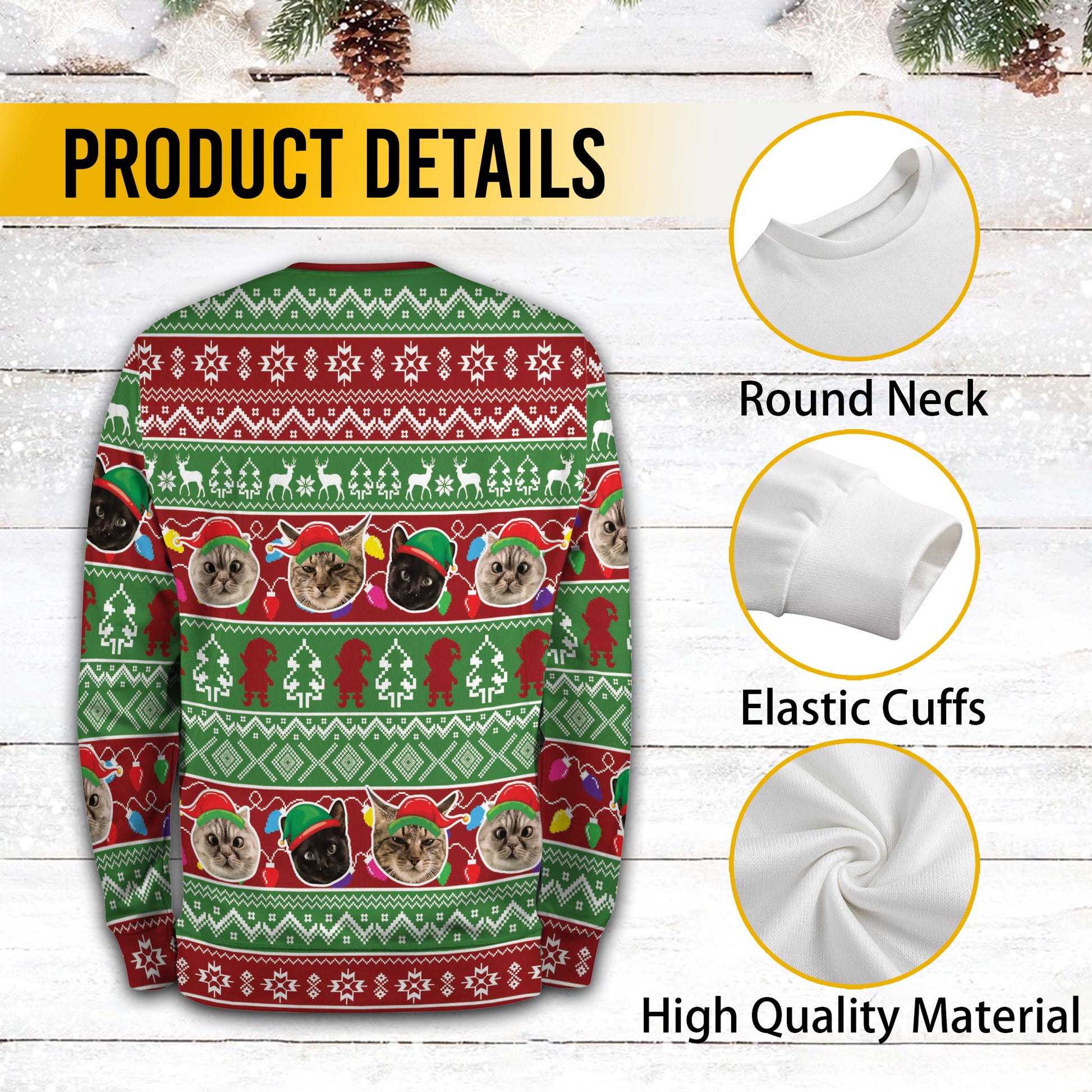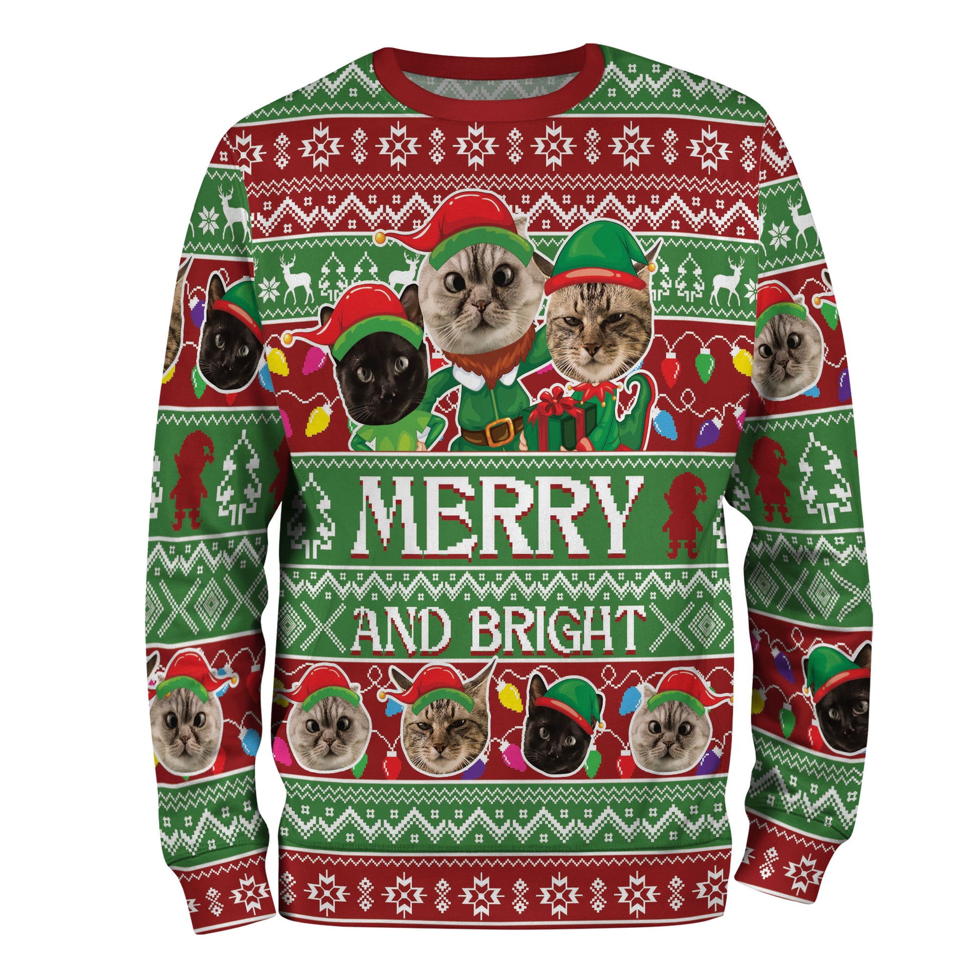 Personalized Cat Face Christmas Sweater – Custom Photo Ugly Xmas Sweatshirt for Cat Mom & Cat Dad