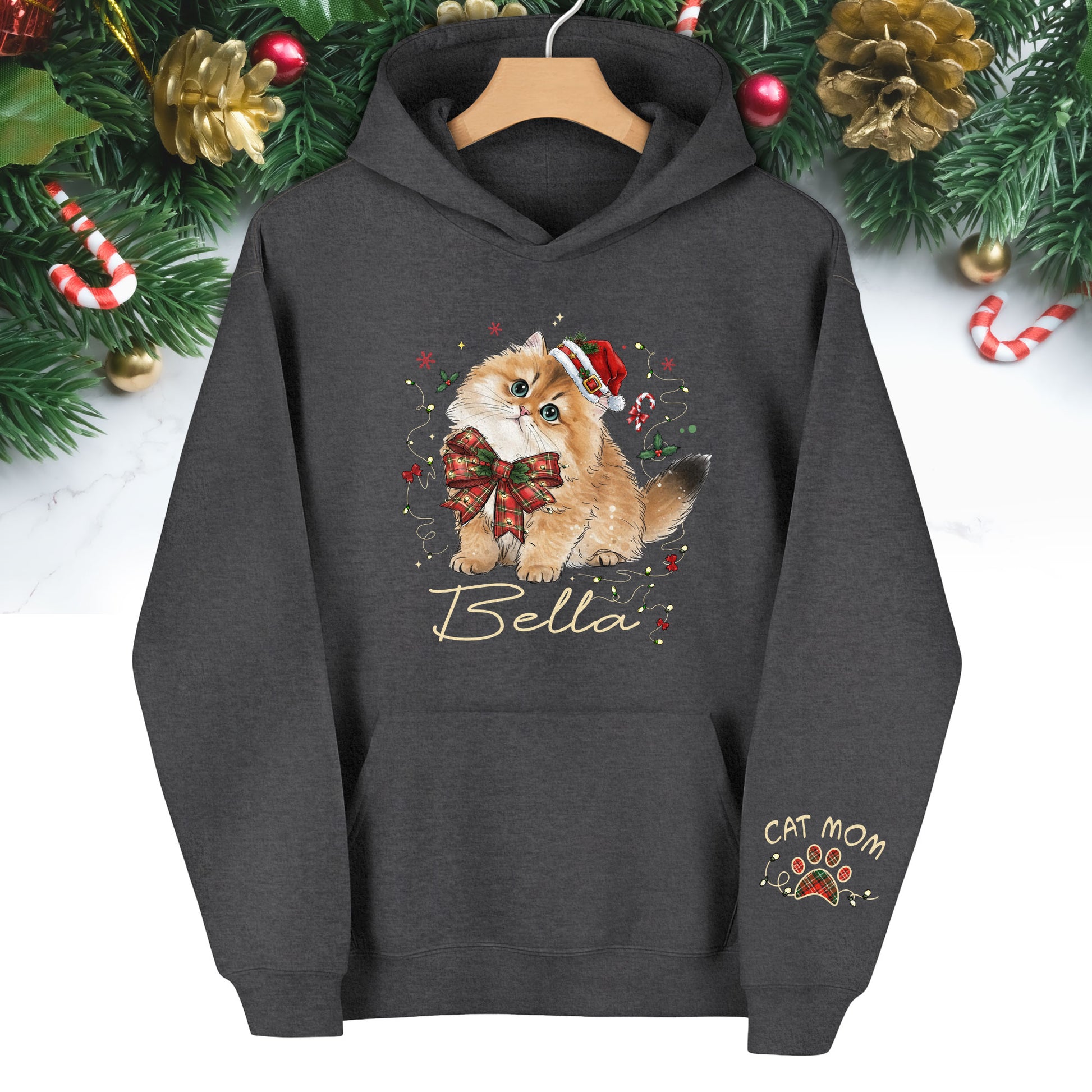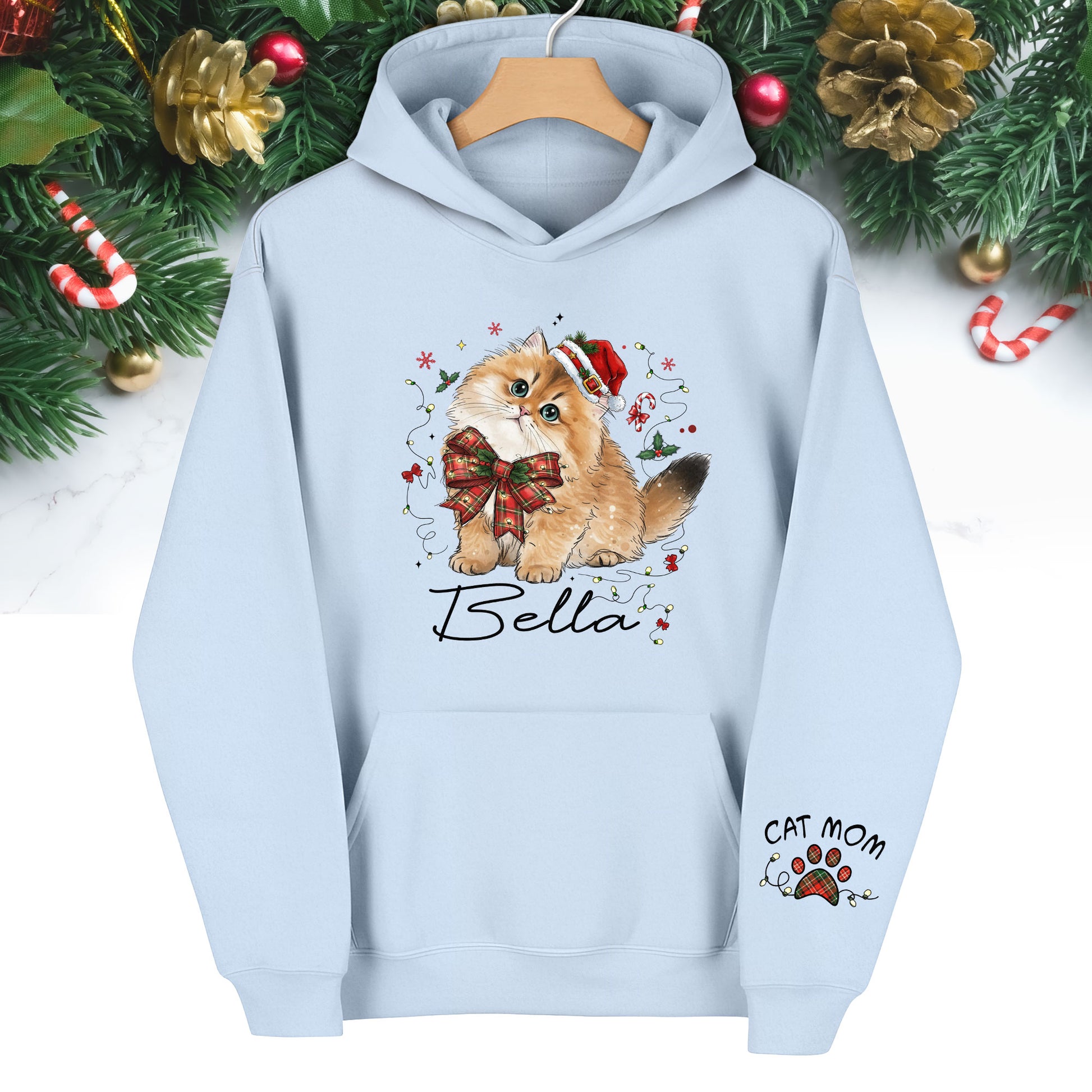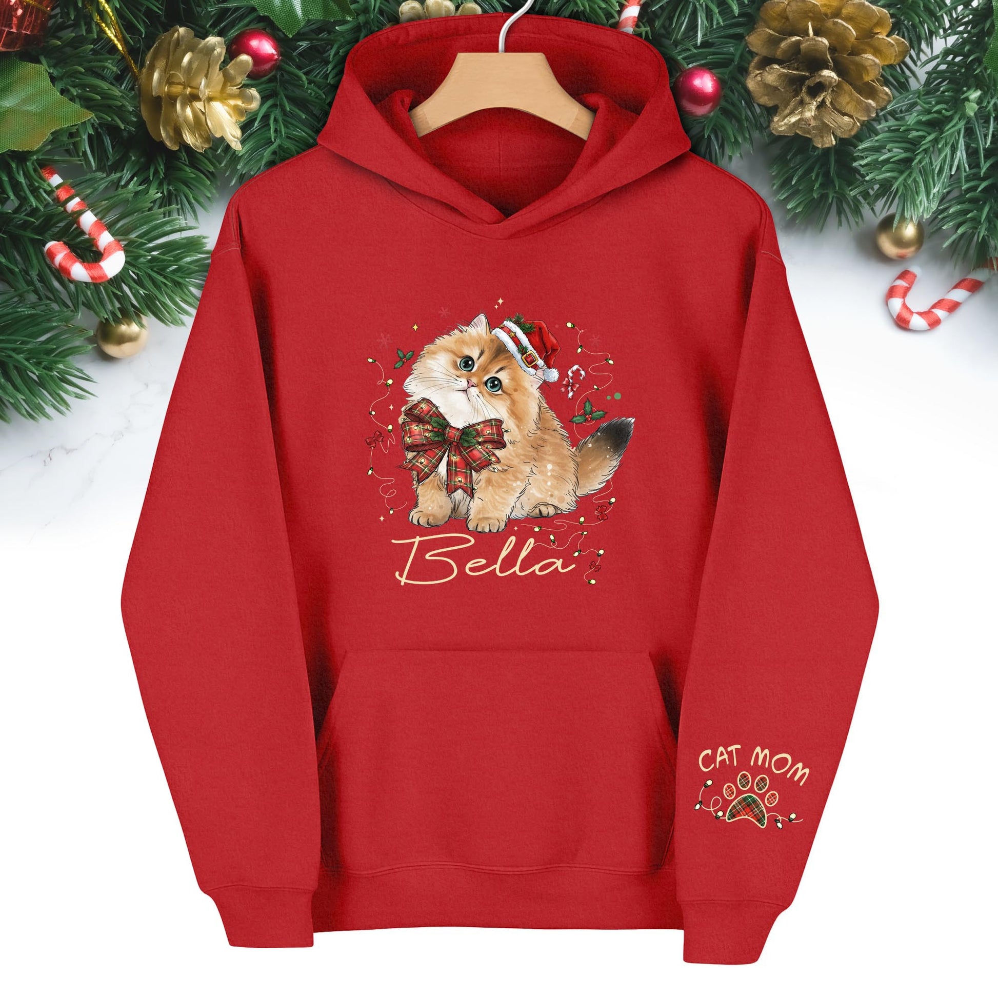 Personalized Cat Portrait Christmas Hoodie β Custom Pet Photo Gift for Cat Moms