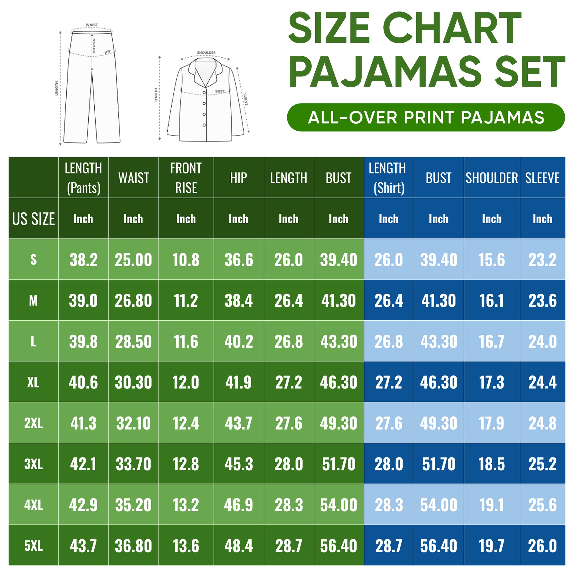 PAJAMA SIZE CHART