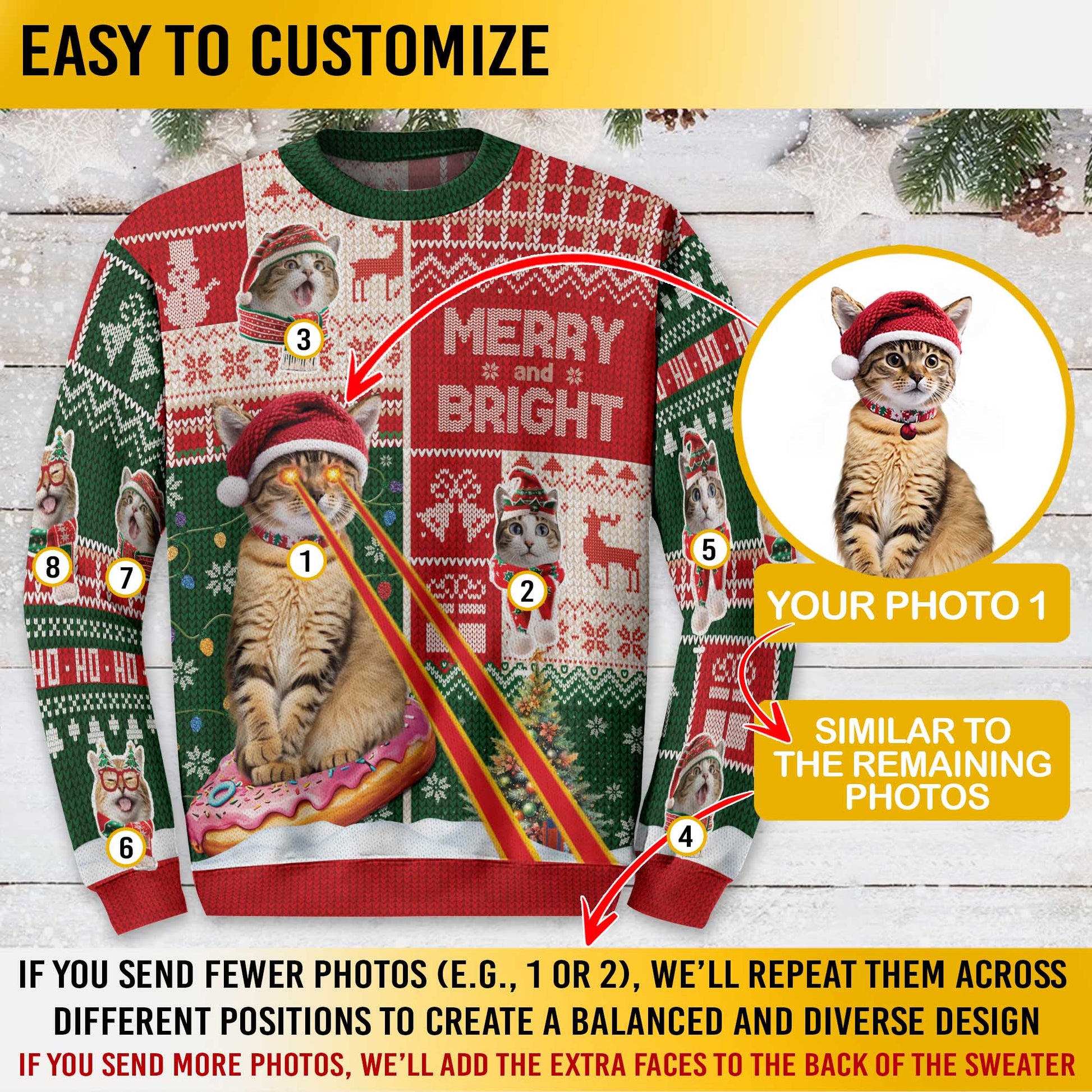 Custom Cat Ugly Christmas Sweater – Funny Merry & Bright Sweatshirt for Cat Lovers Gift
