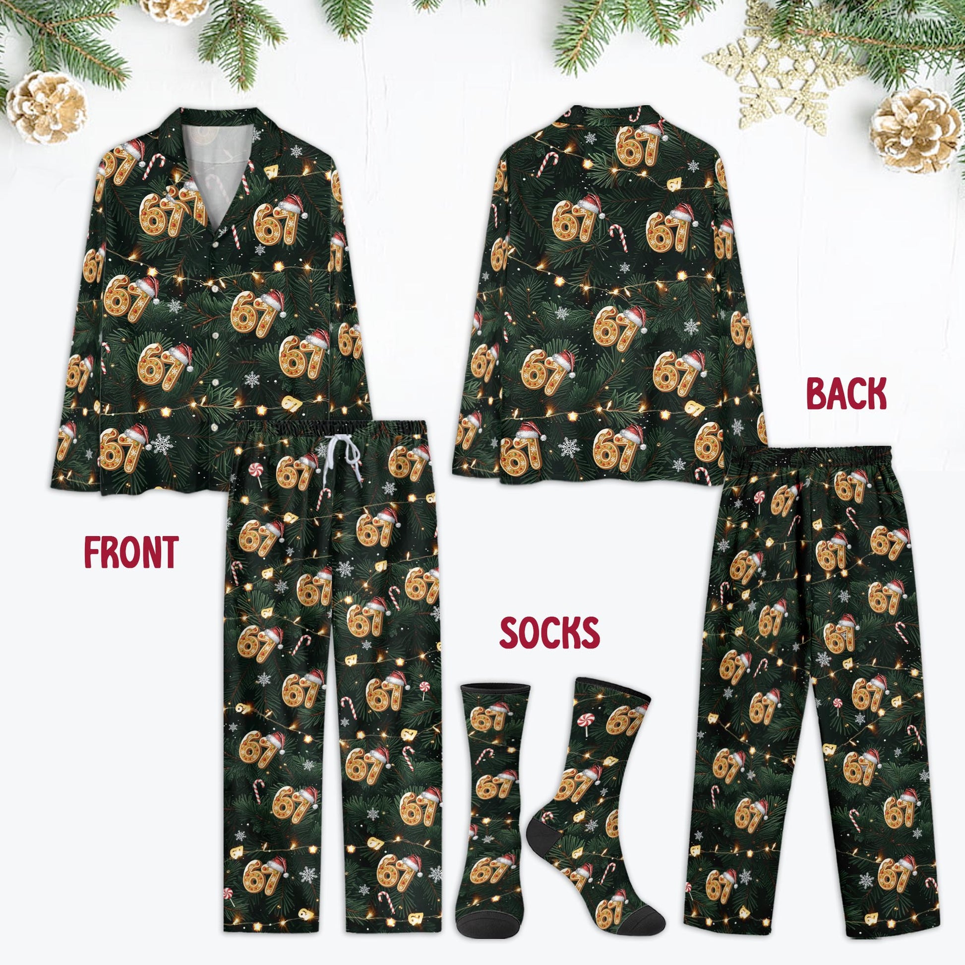 Santa Hat Numbers 6 7 Christmas Sleepwear Set for Men, Women